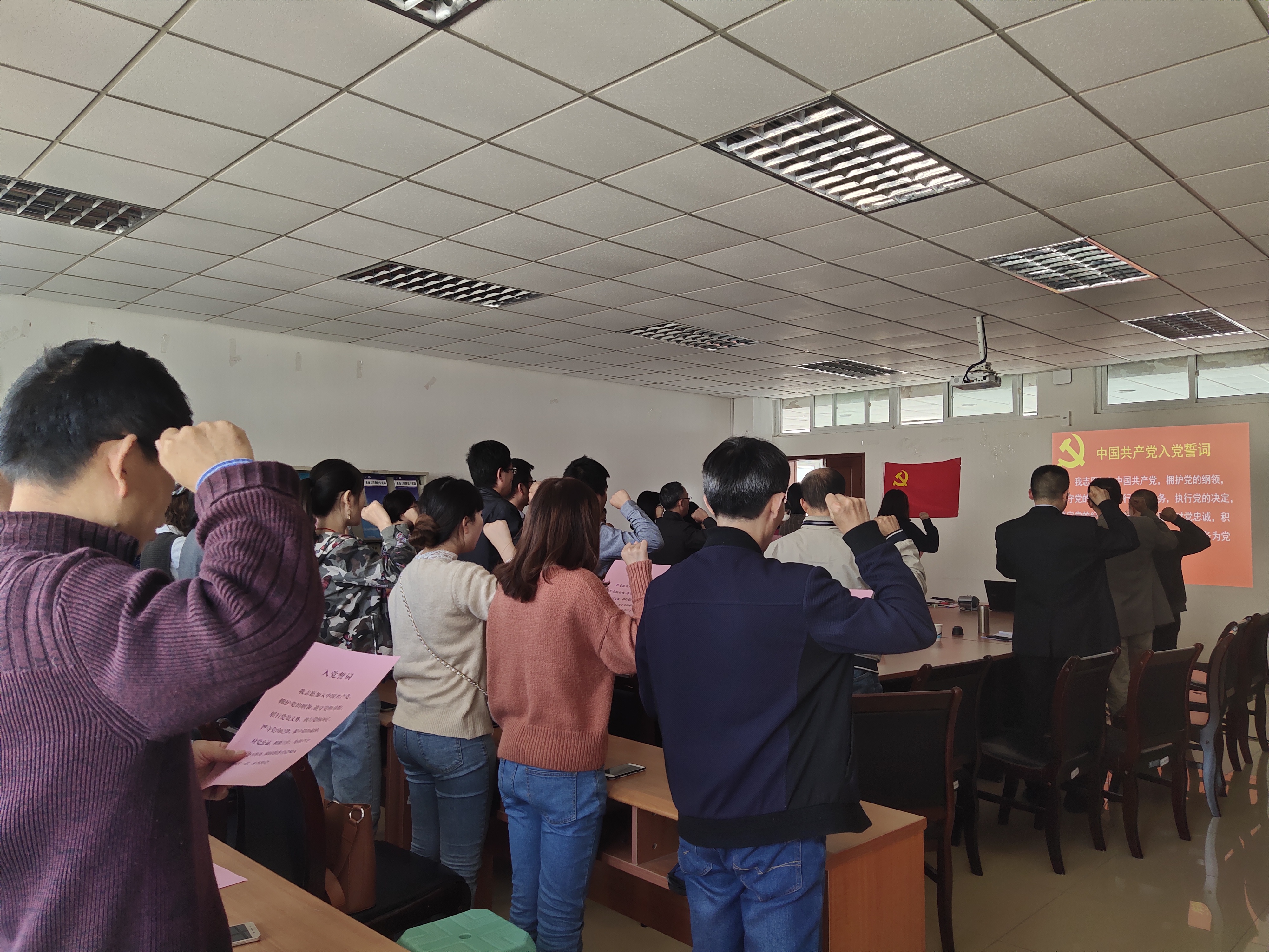 最后,全体起立奏国际歌,并重温入党誓词。