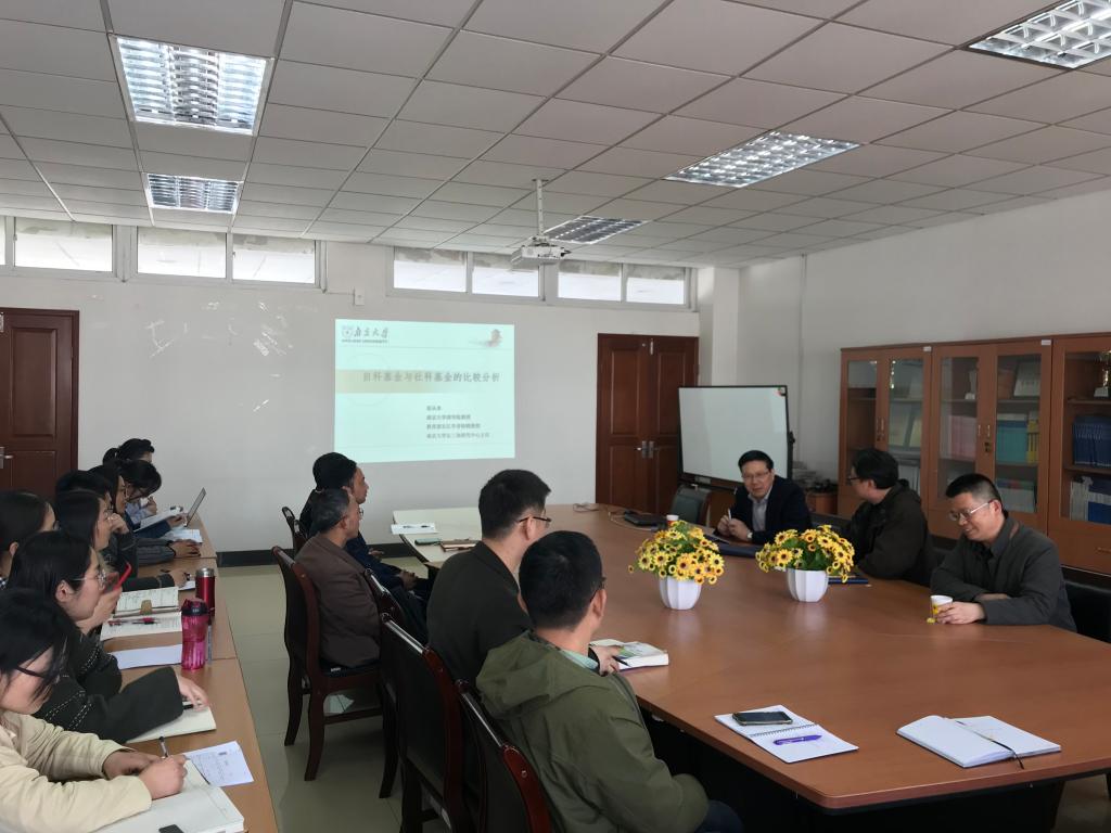 会议首先由南京大学商公司范从来教授作题为“自然科学基金与社会科学基金的区别”专题辅导。范教授分别从选题、研究内容、目标等角度,结合申请书实例,阐述了自然科学基金与社会科学基金的区别,并针对国家社科基金申请的选题、申报书撰写和设计等几个方面进行了全面细致讲解,提出了许多宝贵的具有针对性的建议。随后,围绕教师在国家基金申请中遇到的问题,与参会教师进行了深入交流,老师们纷纷表示受益匪浅,不仅认识到了当前存在的不足,还进一步明确了今后努力的方向,为公司明年申报国家社科基金奠定了坚实的理论基础。