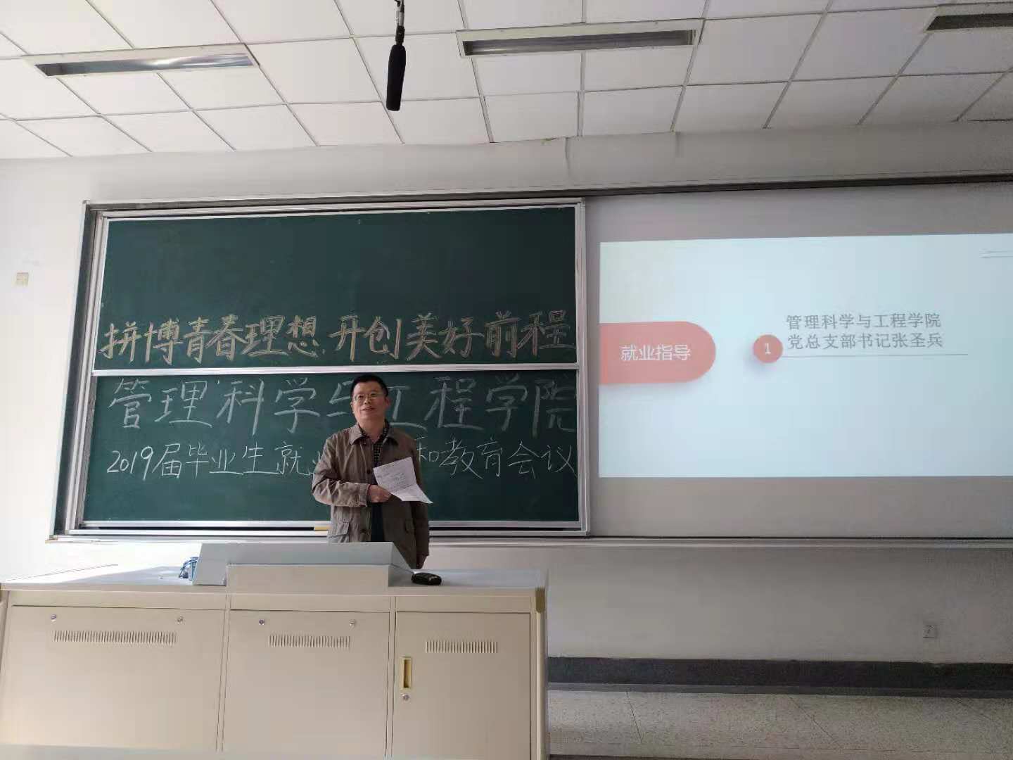 11月13日中午,XCsports在德济楼103教室举办了2019届全体毕业生就业指导与教育大会。公司党总支书记张圣兵、党总支副书记袁军、辅导员郑媛媛和全体2019届毕业生参加了会议。