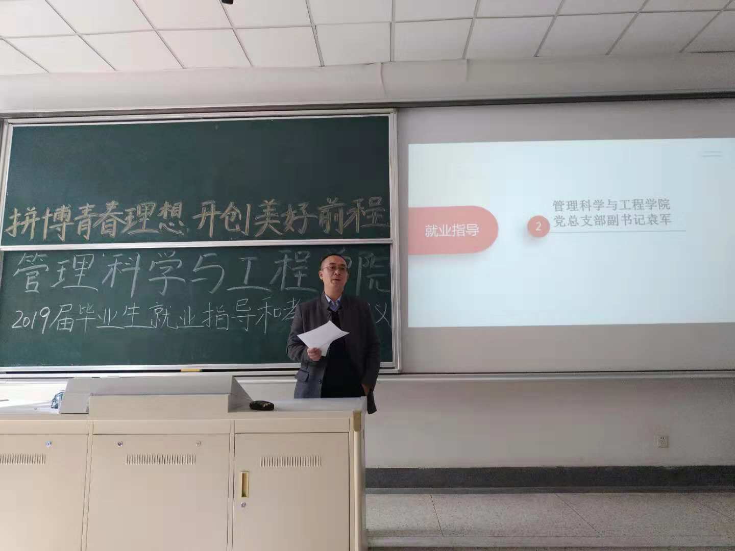 最后,毕业班辅导员郑老师详细讲述了毕业前各项安排,包括期末考试、体质测试、毕业实习、就业派遣、就业创业政策等,讲解了老员工基层就业政策,包括老员工征兵入伍及学费补偿政策、苏北计划和西部计划等,以及安全教育等。郑老师提醒同学们提前了解就业签约反馈的主要流程,主动关注公司、公司发布的就业消息,重视每一份毕业材料的填报,并提醒同学们遵守各项纪律,注意人身、财产、交通安全,希望大家努力奋斗收获美好前程。