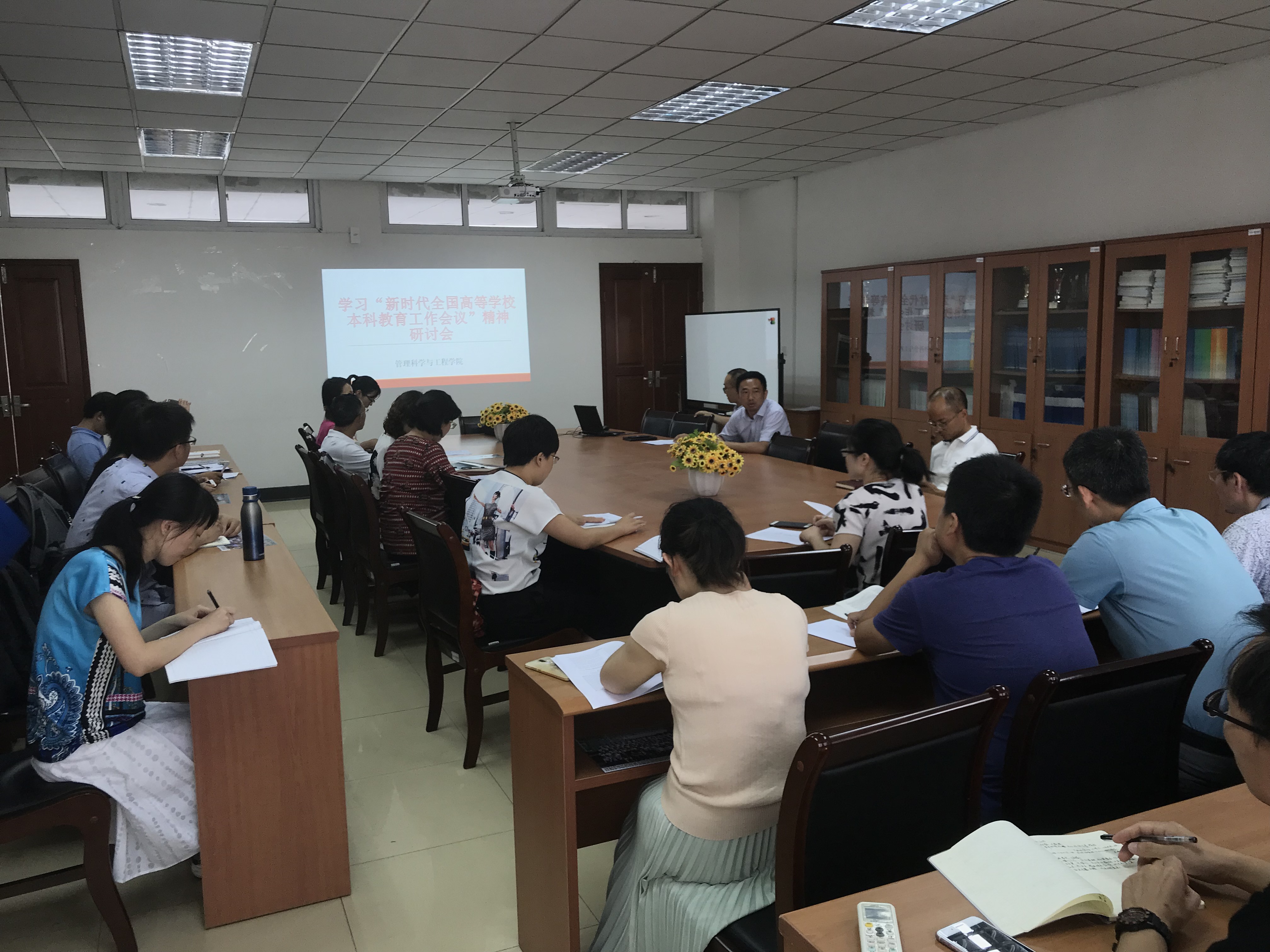 管理科学系主任于荣结合改革教学管理制度、推动课堂教学革命、加强学习过程管理等方面谈了管理科学系下一步拟进行的改革方向;工业工程系主任孟秀丽就深化创新创业教育改革、改革评价体系进行了主题发言;质量管理工程系主任张庆民就陈宝生部长的讲话谈了自己的心得体会。全院教师一致认为新时代全国高等公司本科教育工作会议上提出的《一流本科教育宣言》和《新时代高教40条》意义重大,为公司未来的本科教育改革指明了方向。