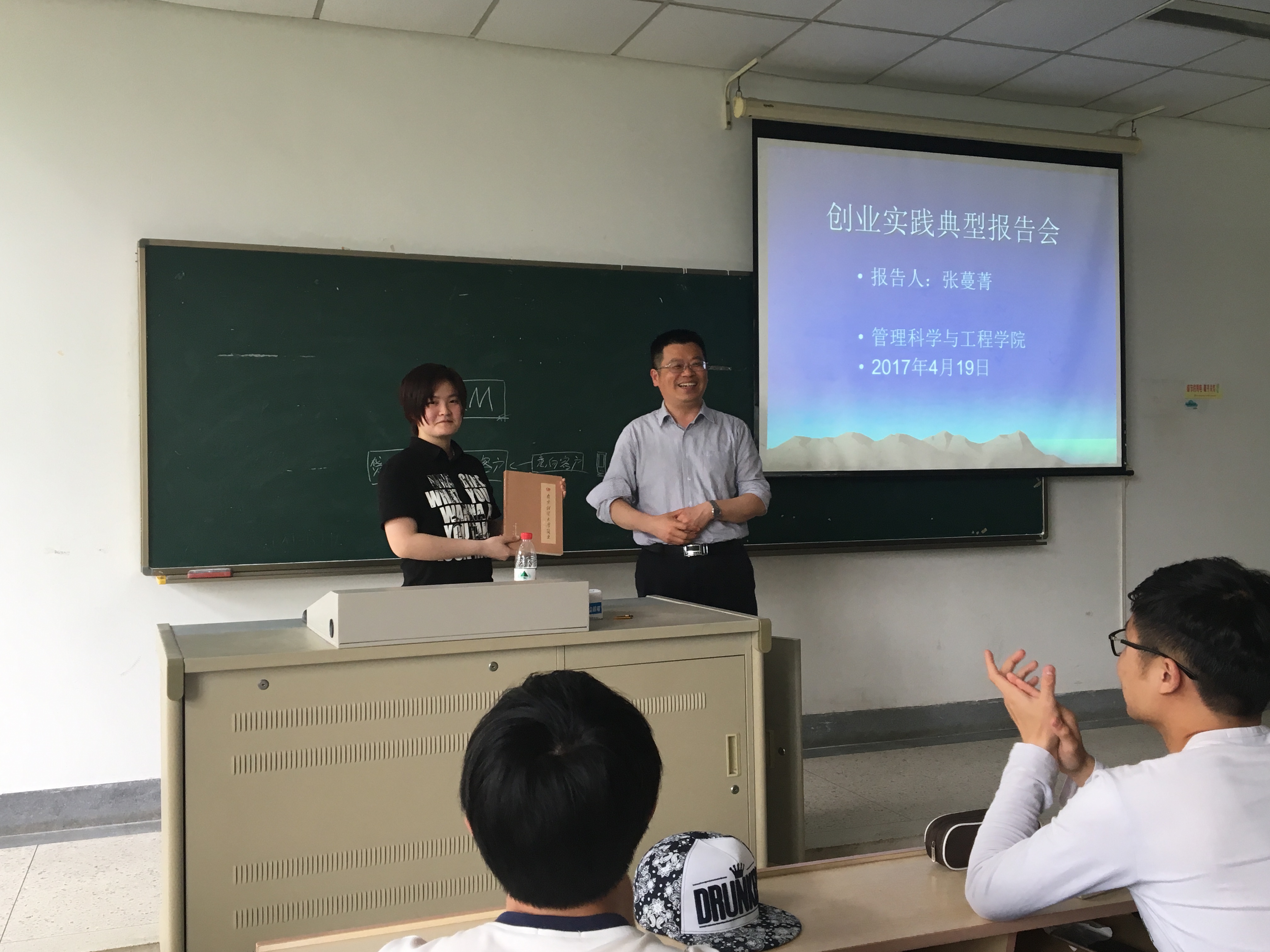 4月19日下午两点,XCsports创业实践报告会在经济学科楼202室如期举行。此次报告会邀请了营销与物流管理公司“创业达人”——张蔓菁同学。报告会由公司党总支书记张圣兵主持。部分研究生代表以及该院2016级员工代表聆听了此次报告。