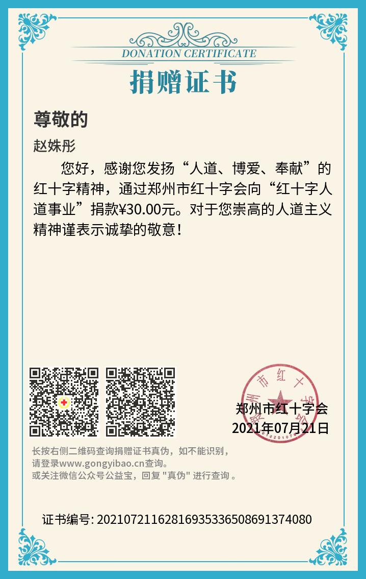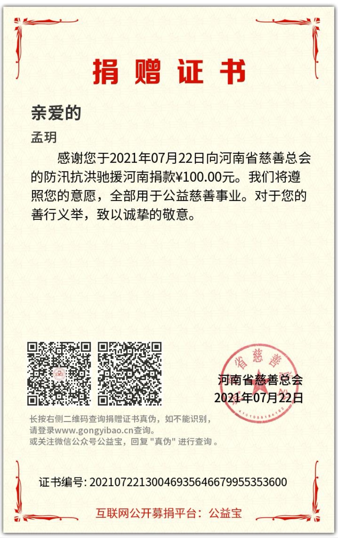 孟玥和赵姝彤分别向河南省慈善总会和郑州市红十字会爱心捐款。家在新疆的管理1901班预备党员梁舒越加入线上志愿者行列,转发扩散求救、急需物资、现场情况等信息,甚至遇到肾衰竭患者被困的紧急情况,不停跟进、请求加急。看到那些一条条被转发的求助信息“已解决”,非常欣慰。