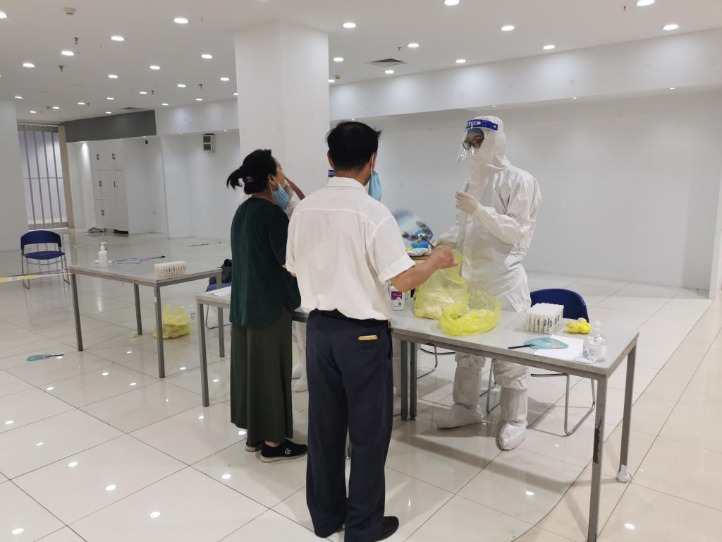 南京市的全员核酸检测采用了“十合一”的混合检测方式。志愿者们需要引导市民有序排队,将十人分成一组,并把对应的试管交给医护人员,方便他们进行采样。当市民对采样方式有疑惑的时候,身为志愿者的他们也需要对市民进行耐心解释。