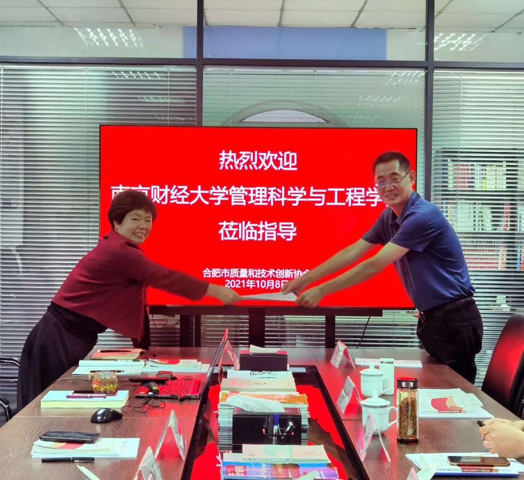在参观完合肥市质量和技术创新协会办公室后,双方召开质量创新产教融合研讨交流会,会上高程华介绍了合肥质协的发展历程,并表示希望通过本次合作促使协会全面发展迈上新台阶。高程华还进行了招聘宣讲,她围绕合肥质协的组织文化、组织架构和招聘岗位展开介绍,并表示欢迎感兴趣的同学积极应聘。倪明介绍了公司的发展突破、公司的专业状况,并希望双方共享资源,优势互补,落实落细产教融合,实现协同育人。