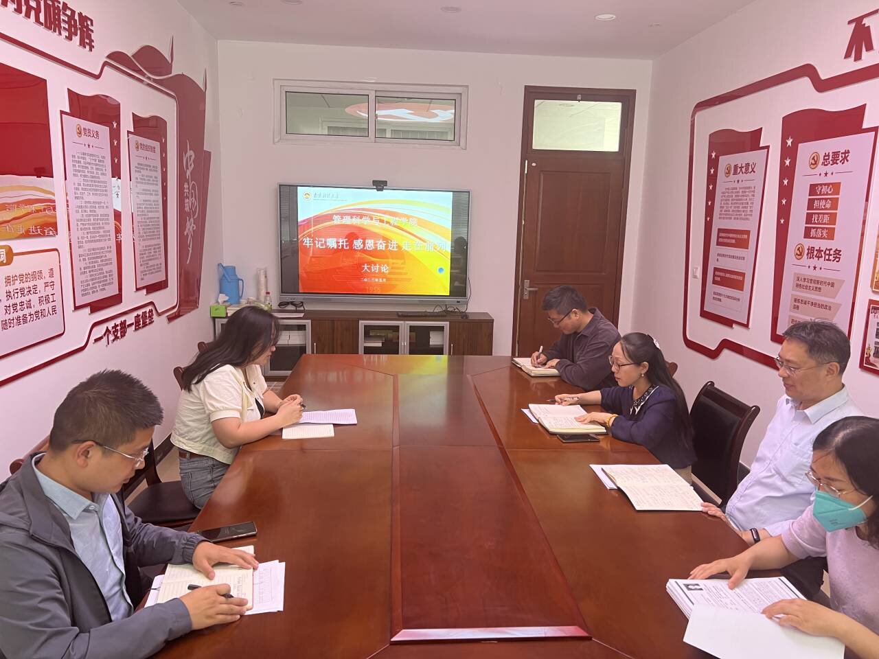 孟秀丽副经理认为,目前公司正迎接MEM专硕项目评估工作,整个公司应以主题教育为契机凝心聚力,提升公司学科影响力,推进公司高质量发展。张正勇副经理表示,新一轮本科教学评估,我们把主题教育作为教学质量提升的契机。研究生支部和本科生支部书记,分别结合自身工作进行了讨论。