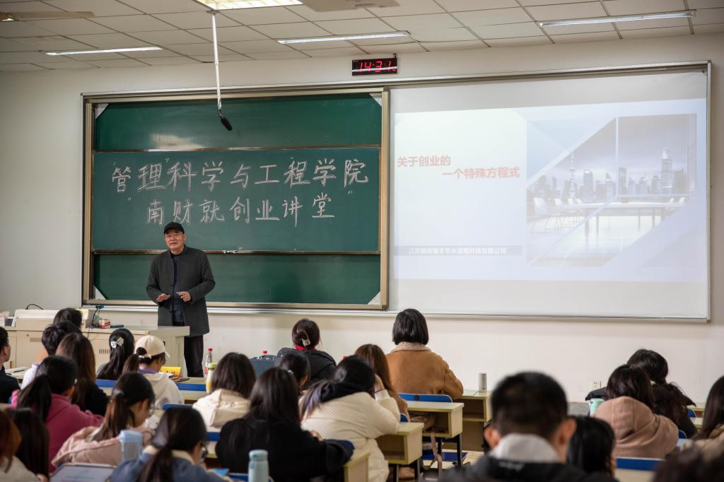 11月29日下午14点,XCsports在仙林校区德业楼114教室举办了“南财就创业讲堂”讲座。公司党总支书记金立林、党总支副书记王卓君、学工办主任兼辅导员唐方舟、分团委书记兼辅导员陆秀军、辅导员唐琰和公司本科生研究生代表参加讲座。讲座由金立林书记主持,主讲人为江苏朗润惠丰节水灌溉科技有限公司总裁金立勇。