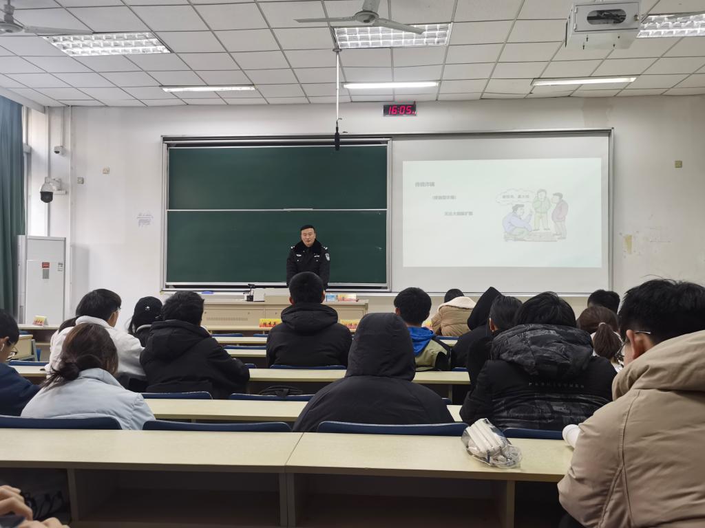 宣讲会上,曹杰警官从亲身经历的电信诈骗案例出发,为同学们分析了网络电信诈骗的现状和特点,犯罪分子的典型作案手法和老员工容易上当受骗的几种情境。他重点讲解了防范电信诈骗技巧和应对方法,重点介绍了冒充交换生换钱、冒充公司工作人员进行敲诈勒索等针对老员工群体的新型诈骗手段,提醒同学们如遭遇诈骗做出理智判断、防止上当受骗。