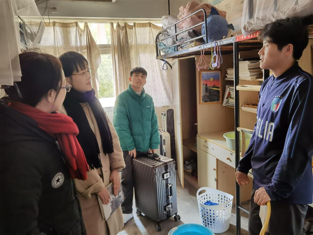 走访期间,领导老师们与同学们亲切交谈,详细询问了同学们假期的学习生活情况,引导同学们及时调整状态,养成良好的作息习惯,以更加饱满的精神和热情迎接新学期的到来。公司领导在宿舍还重点检查了可能存在消防安全隐患的部位,叮嘱同学们“安全无小事”,一定要严格遵守公寓管理规定,增强安全防范意识。