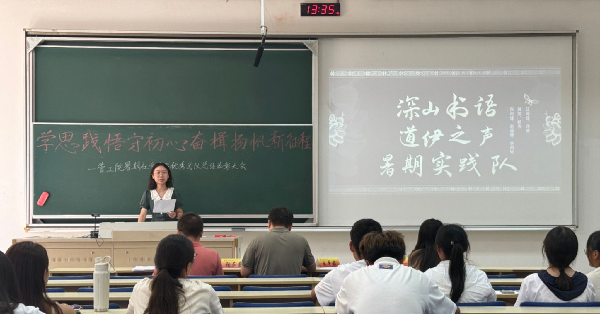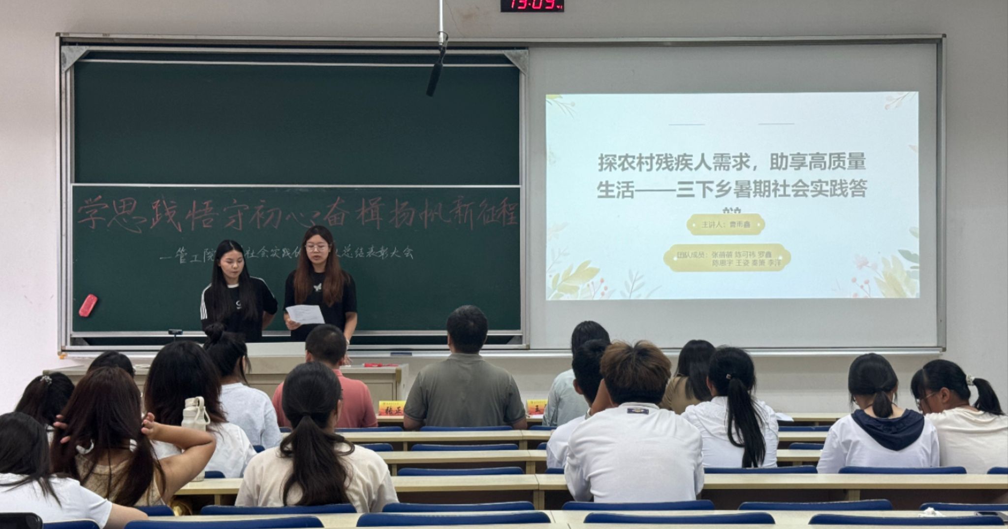 会议开始,主持人宣读了答辩规则和评分标准。随后,九支暑期实践队伍依次上台进行答辩,以PPT的形式展示团队实践成果,并回答评委提问。从“农村环境五年整治,绘就美丽乡村新画卷”的乡村振兴团队,到“正本草之清明 序药性之本源 ”的中医药传承团队。从“以爱为翼,让爱无碍”的温暖同行团队,再到“青青园中葵,古韵焕新生”的创新旅游团队。从“质量管理数字化,催生新质生产力”的质量管理团队,到“深山‘书’语,道依之声”的非遗乡村助力团队。其中,乡约滨海团队提出“到党和人民需要的地方去,把青年青春的热血镌刻在丰碑上,为祖国的繁荣昌盛添砖加瓦”,大大振奋了人心。各团队实践内容涉及多个方面,有对驻村“第一书记”帮促机制及对新型农村集体经济发展的影响研究、对透明工厂系统助力江苏乡村制造业数字化转型解决方案的研究、关于非遗创新性传承的探索。在他们的熠熠风采赢得热烈掌声的同时,评委们的点评和提醒也同样发人深思。