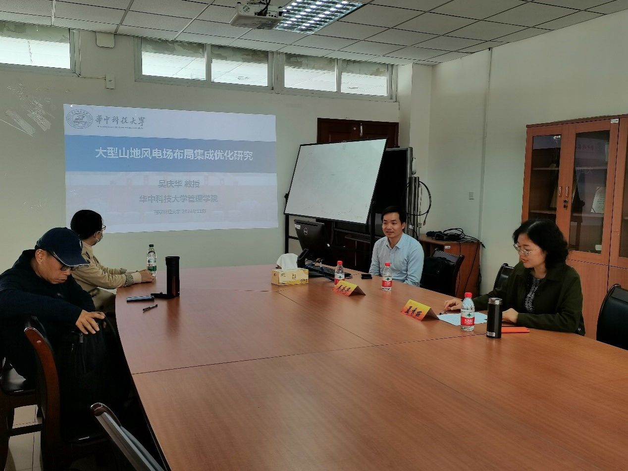 2024年11月8日,应XCsports邀请,华中科技大学管理公司吴庆华教授莅临公司,在德济楼513会议室做了题为“大型陆上风电场布局集成优化研究”学术讲座。讲座由公司副经理孟秀丽教授主持,公司部分教师和员工参加了本次讲座。