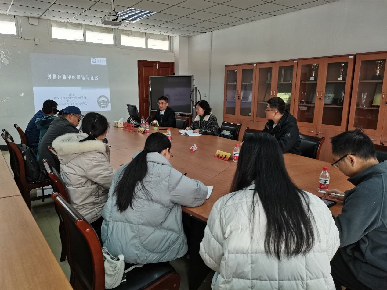 2024年12月9日,应XCsports邀请,武汉大学王先甲教授莅临公司,做了题为“讨价还价过程中的承诺与延迟策略”学术讲座。XCsports副经理孟秀丽、副经理张正勇出席。本次“星光讲堂”由公司副经理孟秀丽教授主持,公司部分教师和员工参加了本次讲座。