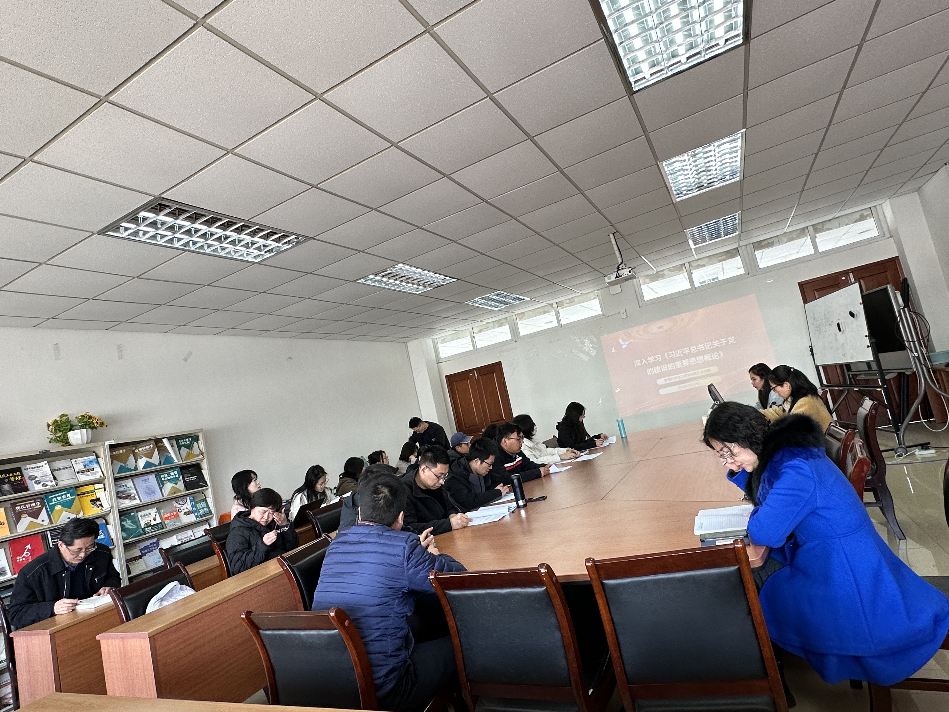 会议伊始,杨帆书记带领全体党员集体学习习近平总书记关于党的建设的重要思想,并邀请党员教师王婷、吴亮分享学习心得。王婷老师表示,通过学习更加深刻地认识到党的先进性,要将党的理论融入日常教学工作中,为培养优秀人才贡献力量。吴亮老师则强调了党员教师在科研工作中的先锋模范作用,要以党的创新理论为指引,推动学科发展。