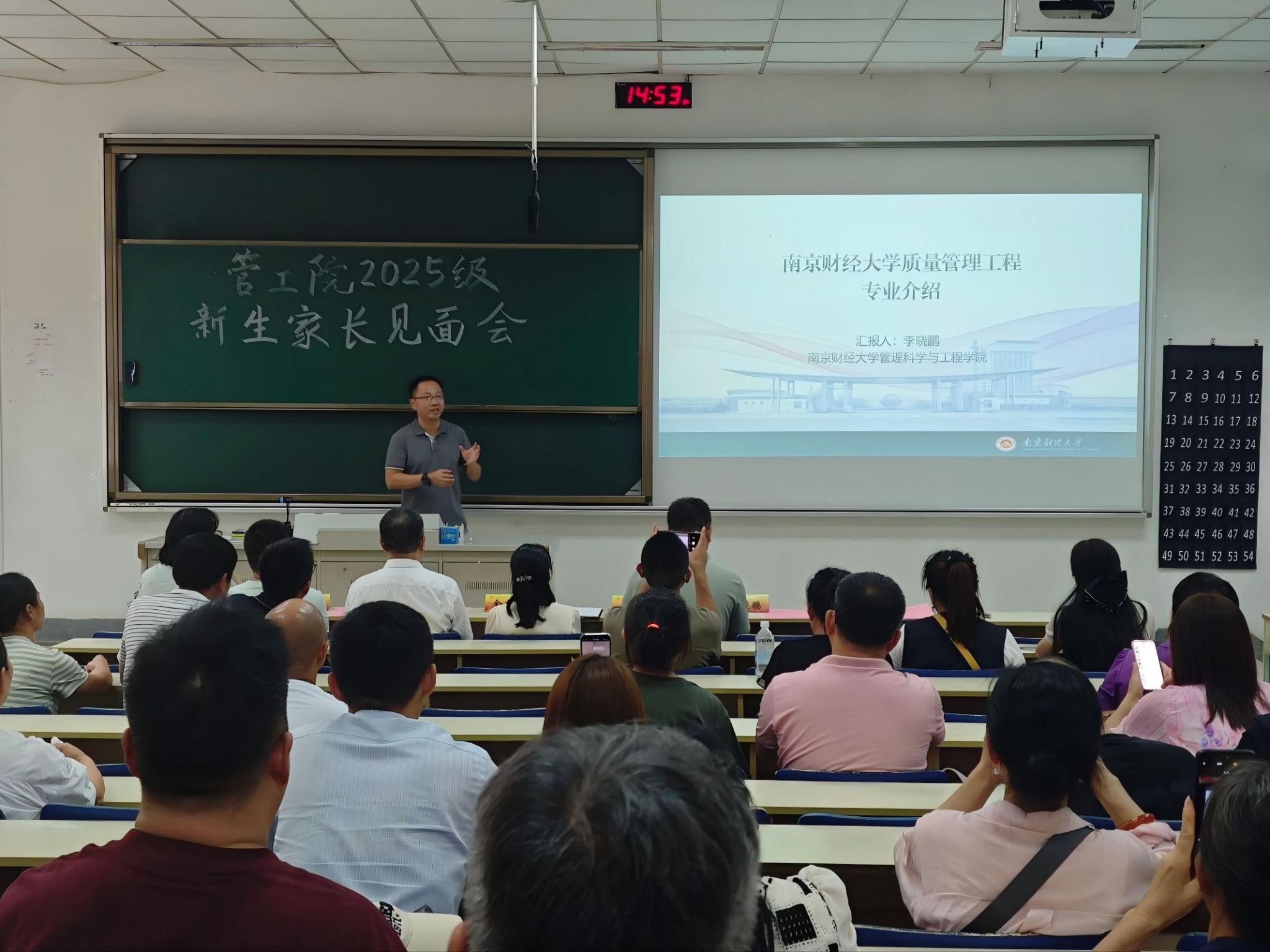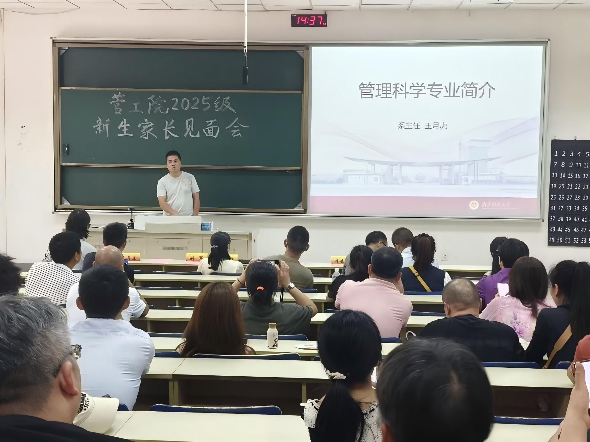 随后,系主任分别介绍了学科的特色、学习内容、就业方向与未来发展等内容。管理科学系王月虎老师从“毕业干什么、四年学什么、管科是什么”三个方面对本专业进行了介绍。质量管理工程系李晓鹏老师介绍了专业的建设发展情况,公司开设的特色人才培养项目“星光计划”——旨在培养本科员工将理论与实践相结合的思维方法和创新能力。其后新生辅导员陆秀军老师介绍了员工日常管理和实践创新培养情况,并希望加强家校合作,共同培育员工成长成才。