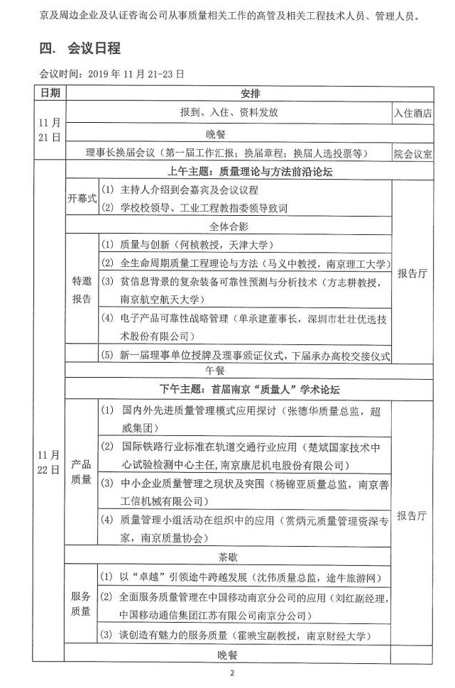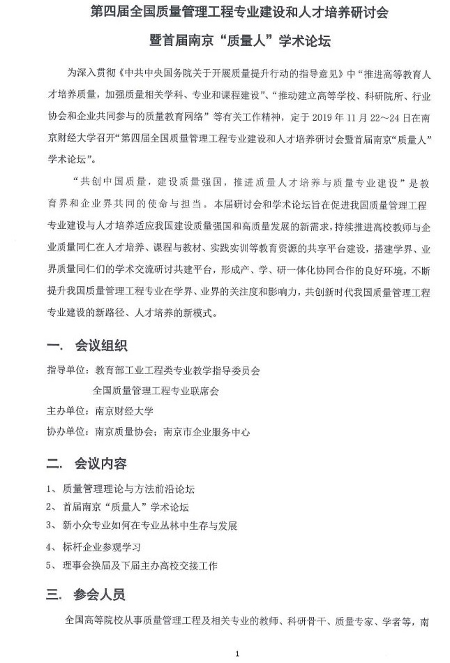 第四届全国质量管理工程专业建设和人才培养研讨会暨首届南京“质量人”学术论坛会议通知
