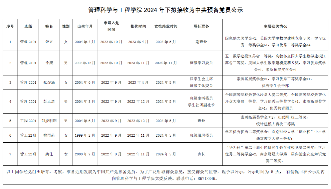 根据《中国共产党章程》和《中国共产党发展党员工作细则》,经支部审查、组织培训、答辩选拔,公司党委认为以下7名同学已基本符合公司员工党员发展条件,拟近期发展,现予以公示。