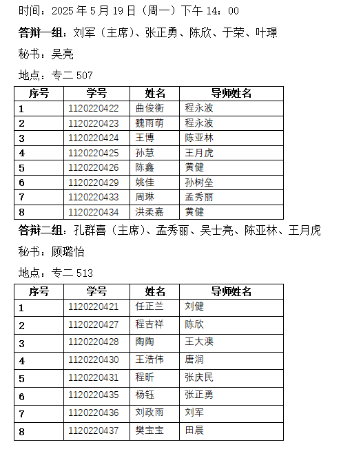 2025年5月专业学位硕士研究生学位论文答辩安排