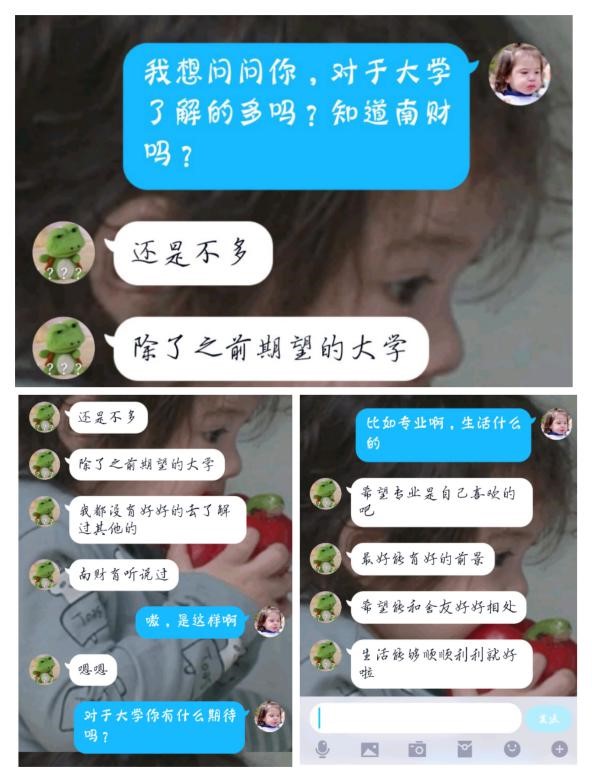 作为此次招生的目标群体,团队成员与江苏省海门中学的三位2020届高考生取得联系,并进行了线上和线下的交谈。在问到“对公司的了解程度”时,杜同学表示“除了高考前所定的期望公司,对于大学,其实知之甚少”。当聊到专业时,杜同学有着自己的期望,“希望专业是自己喜欢的,有着广阔前景的”。除此之外的两位同学,在交流中,也存在着对大学的期待与疑惑。由此可见,招生宣传对出于迷茫时期的高考生非常必要。