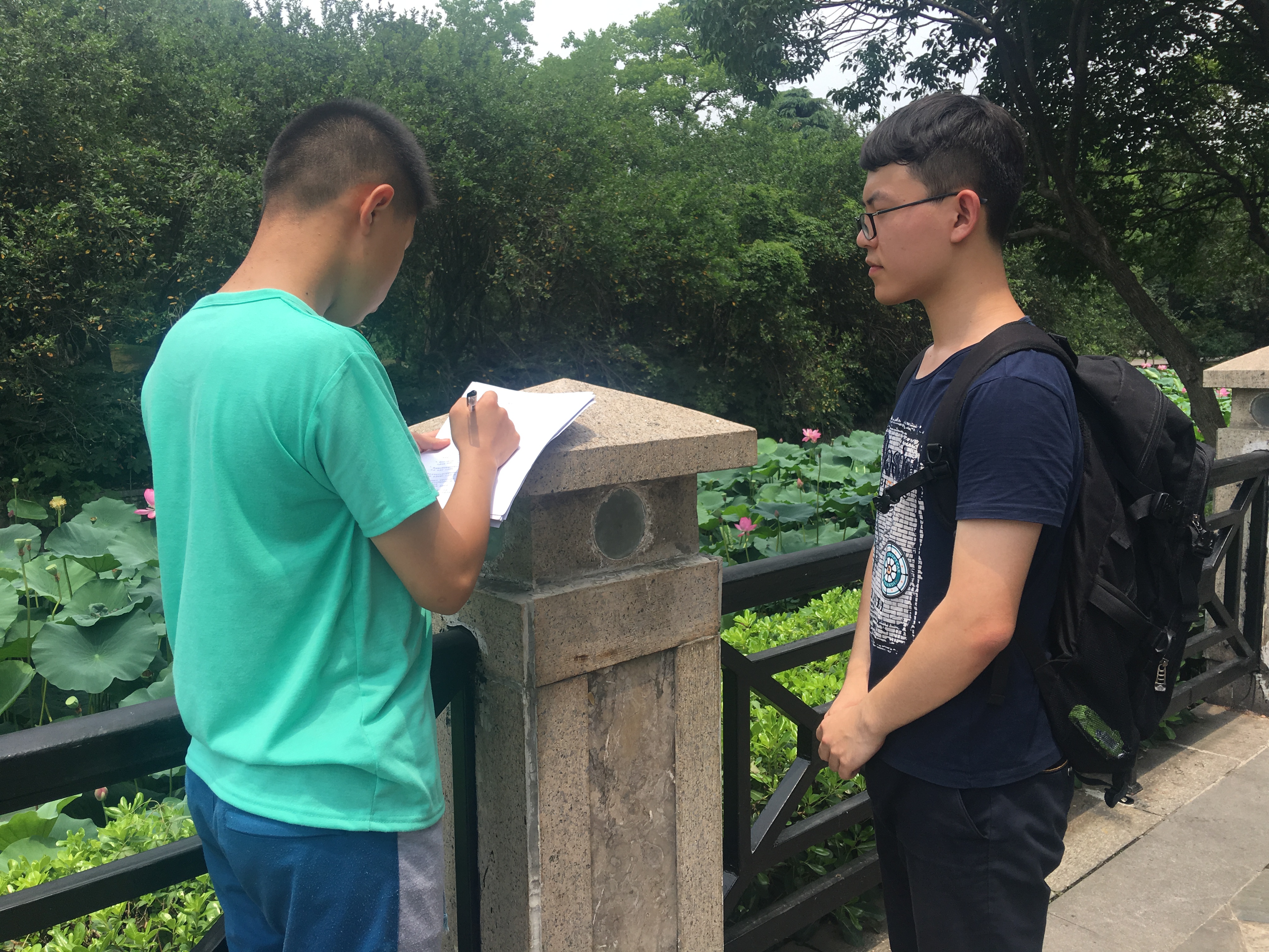 活动期间,队员们来到了莫愁湖公园。莫愁湖位于南京秦淮河西,自古便有“江南第一名湖”等称号。在莫愁湖景区内,队员们以问卷调查了解游客对垃圾分类态度的同时,也对景区内垃圾的分类情况进行了访谈。游客们纷纷表示,现在自己外出游玩的环境保护意识正逐渐增强,但是对垃圾分类并不是十分了解,很多时候都是根据自己的主观判断去投放,往往选择较空的垃圾桶去投放垃圾。