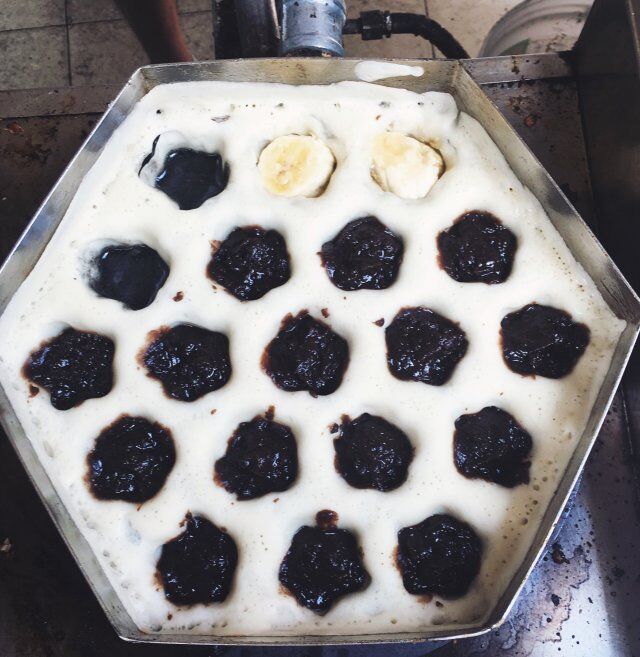 最后,左师傅的徒弟现场给同学们演示了梅花糕的制作过程,并且在梅花糕出炉时,免费赠送同学们品尝。