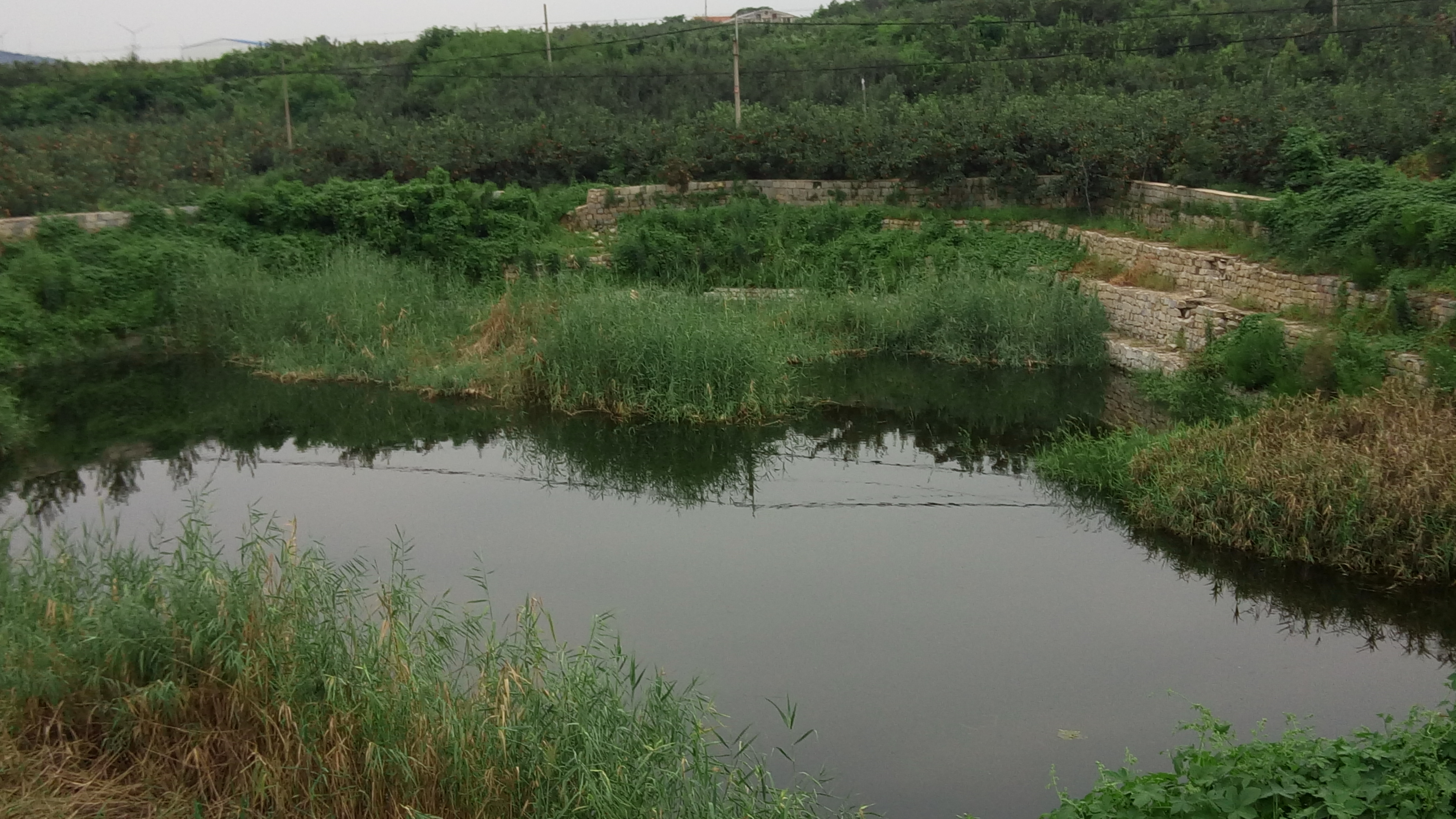 接着,在果农的指引下我们又来到了位置偏僻,荆棘丛生的水库,水库周围的植物茂盛。但是由于其地理位置以及周边环境,再加上政策不允许,所以水库只能起到蓄水的作用,没有抗旱能力。