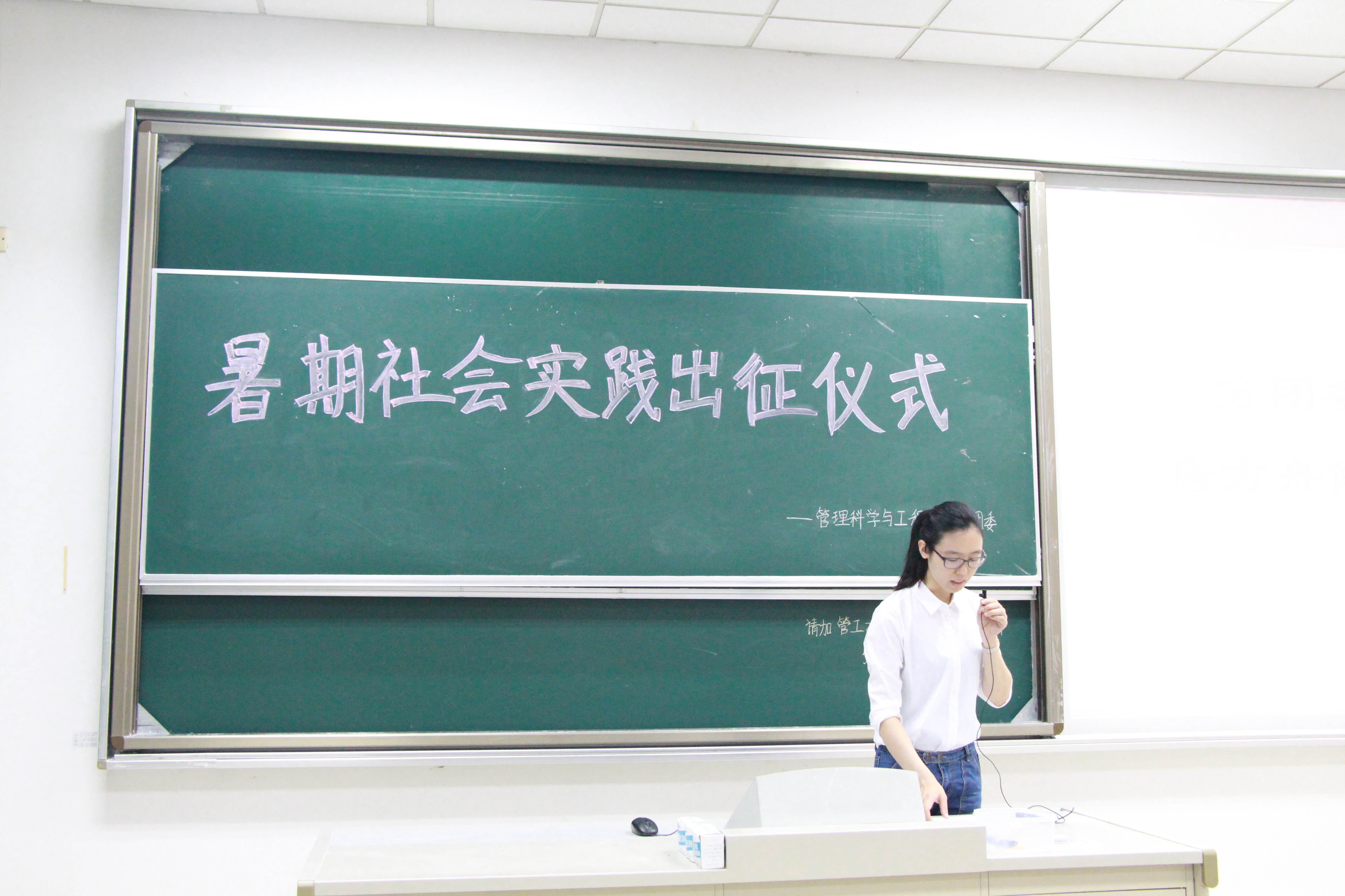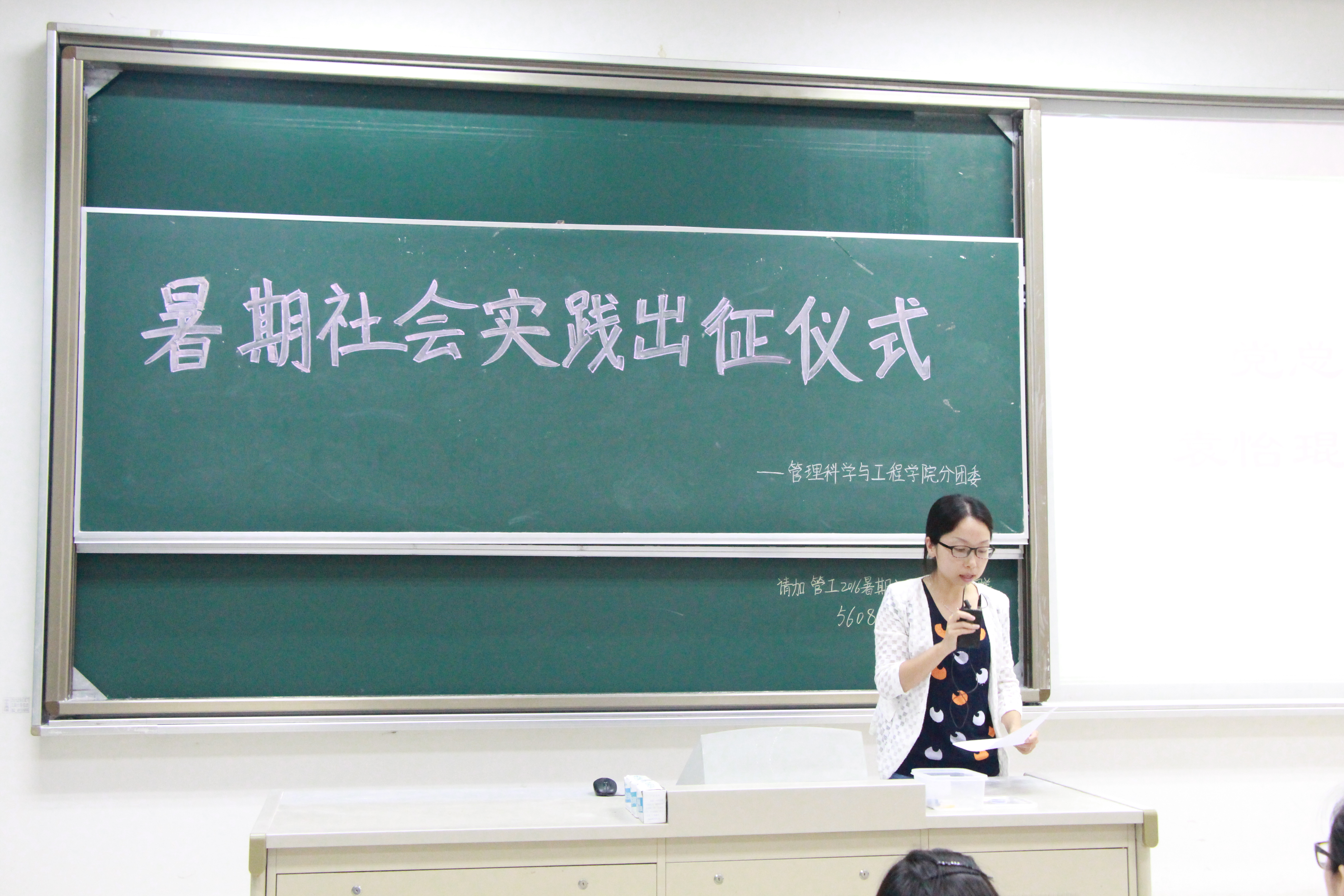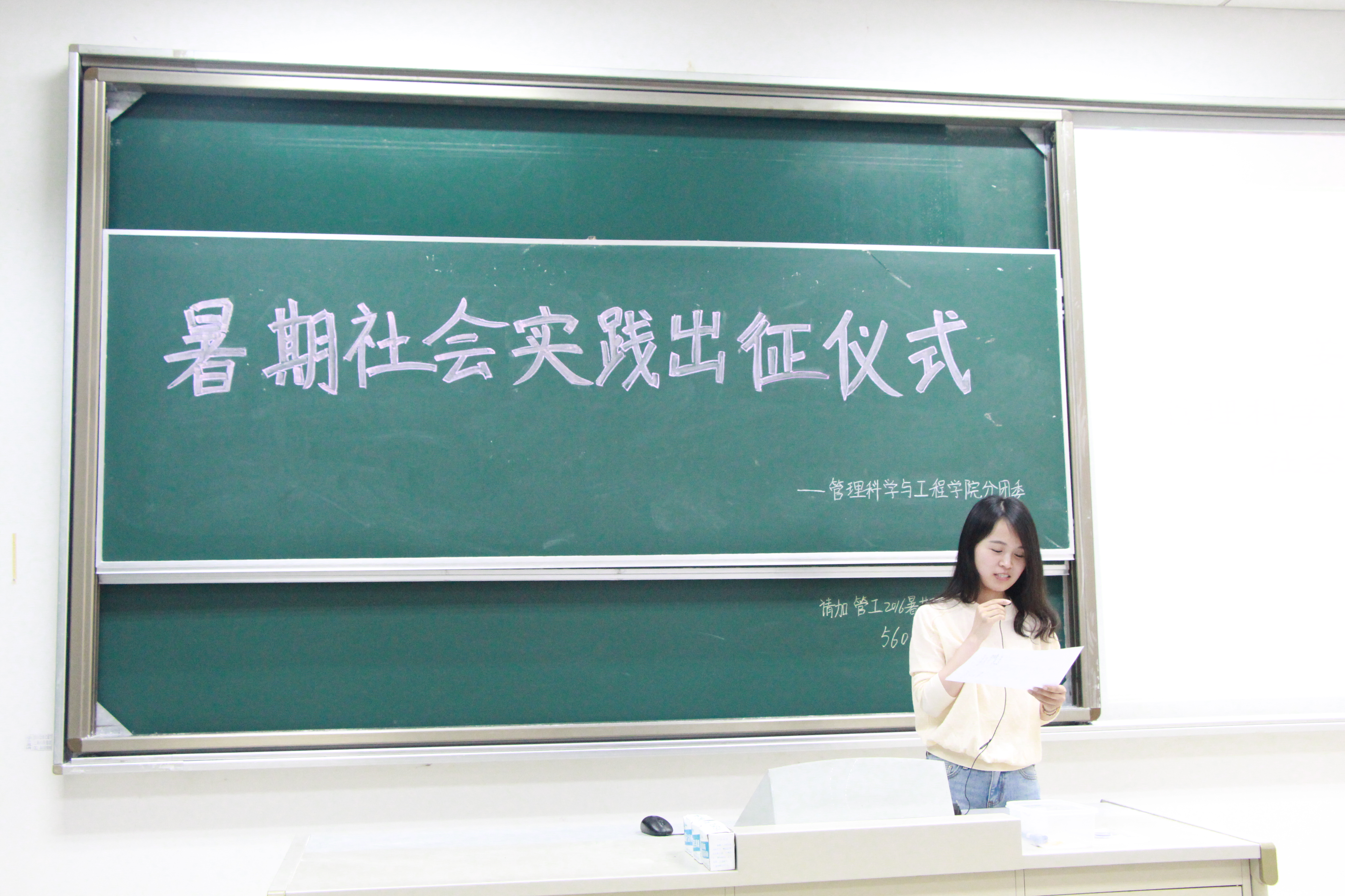 首先,袁怡琨书记作动员讲话。她围绕责任、文明、协作和安全四个方面对团队成员提出要求,并希望大家能全身心投入,认真做好社会实践。随后,董豫佳作暑期社会实践筹备工作报告。之后,毛东详细讲解了暑期社会实践安全细则。紧接着,姜艳老师宣读《2016年暑期社会实践立项名单》。随后是授旗和出征宣誓仪式,成员们情绪高涨。然后,唐方舟老师作动员讲话,她对大家提出四点希望,希望大家放平心态,戒骄戒躁;尽情投入,感受团队协作的快乐;全力以赴去发掘利用资源;注意安全,保护自我,关照队员。
