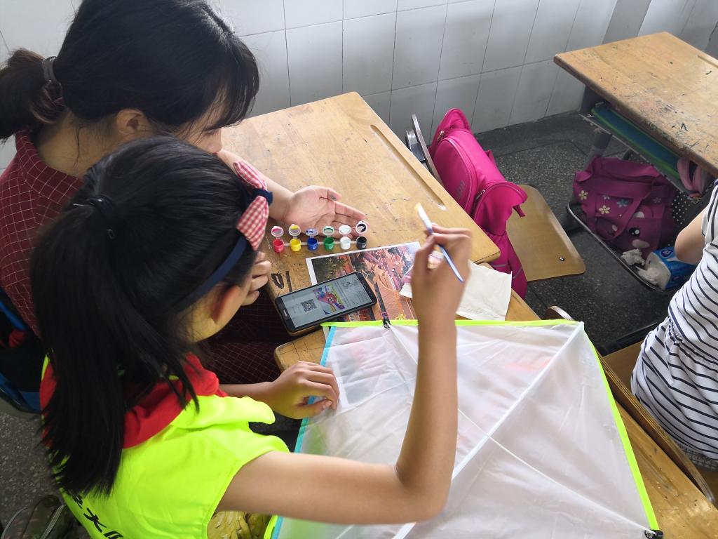 随后,志愿者们为每一个小朋友分发了空白的风筝和配套的绘画工具,并耐心地帮小朋友们调色,帮助小朋友们画出自己心中的中国,也将自己的梦想写在风筝上。有些小朋友画了桂林山水、长城故宫,有的小朋友画了天安门城楼、上海东方明珠,有些小朋友画了支付宝和高铁……