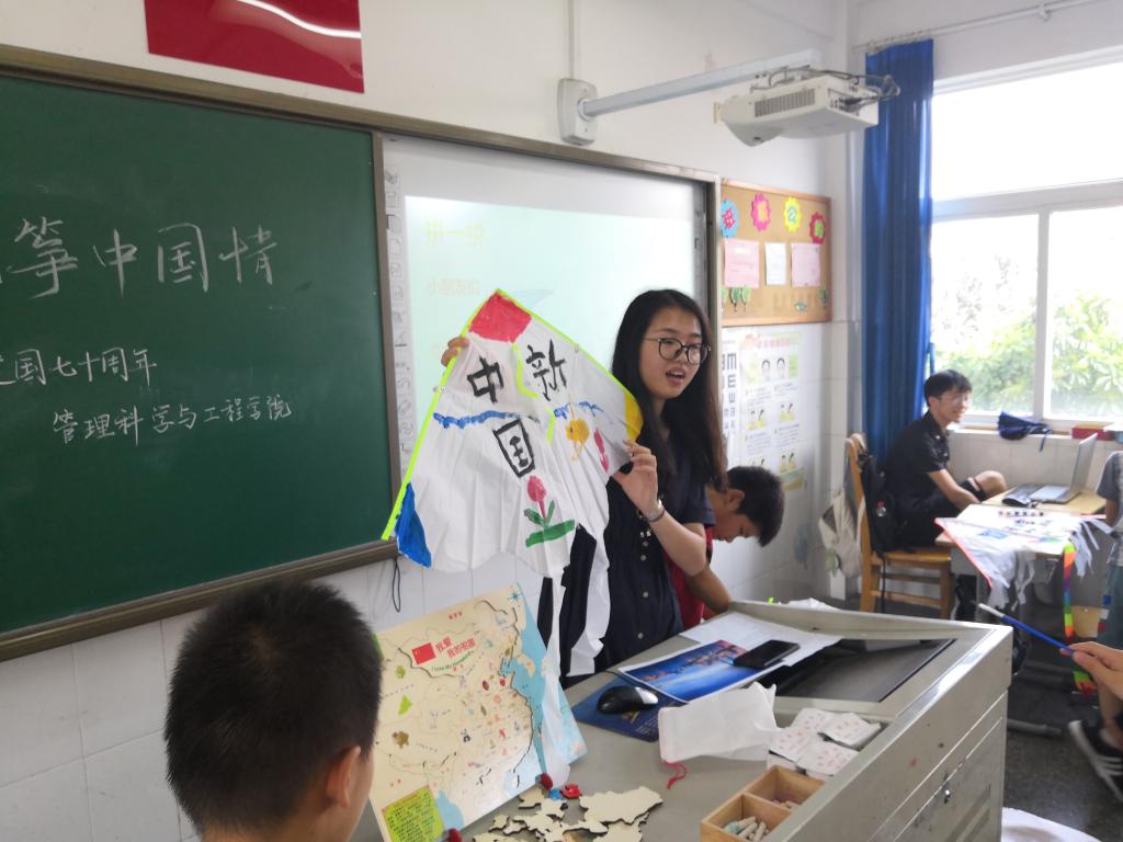 接着,在志愿者的带领下,孩子们一起拼接了一副完整的中国地图。地图背面写有“献礼新中国成立70周年”字样。孩子们表示,感谢志愿者们给他们上了一堂生动的美术手工课。