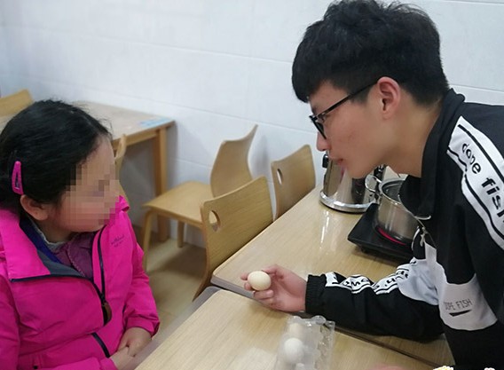 志愿者教孩子们煮鸡蛋