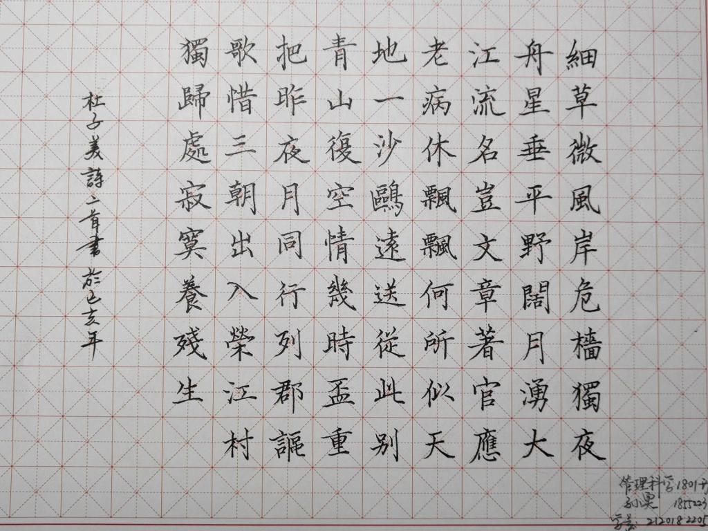 最终,公司评选书法作品组获奖情况如下:管理1701于晓峪书法作品《从军行》荣获一等奖,管理1801孙奥书法作品《旅夜书怀》和管理1801孙慧书法作品《满江红》荣获二等奖,工程1801刘唱书法作品《弟子规》、工程1801吴一凝书法作品《锦瑟》和管理1802 张佳怡书法作品《中庸》荣获三等奖。其余书法作品均获优秀奖。而质管1801 范文欣的支付宝图解说明书获评最佳图解说明书。
