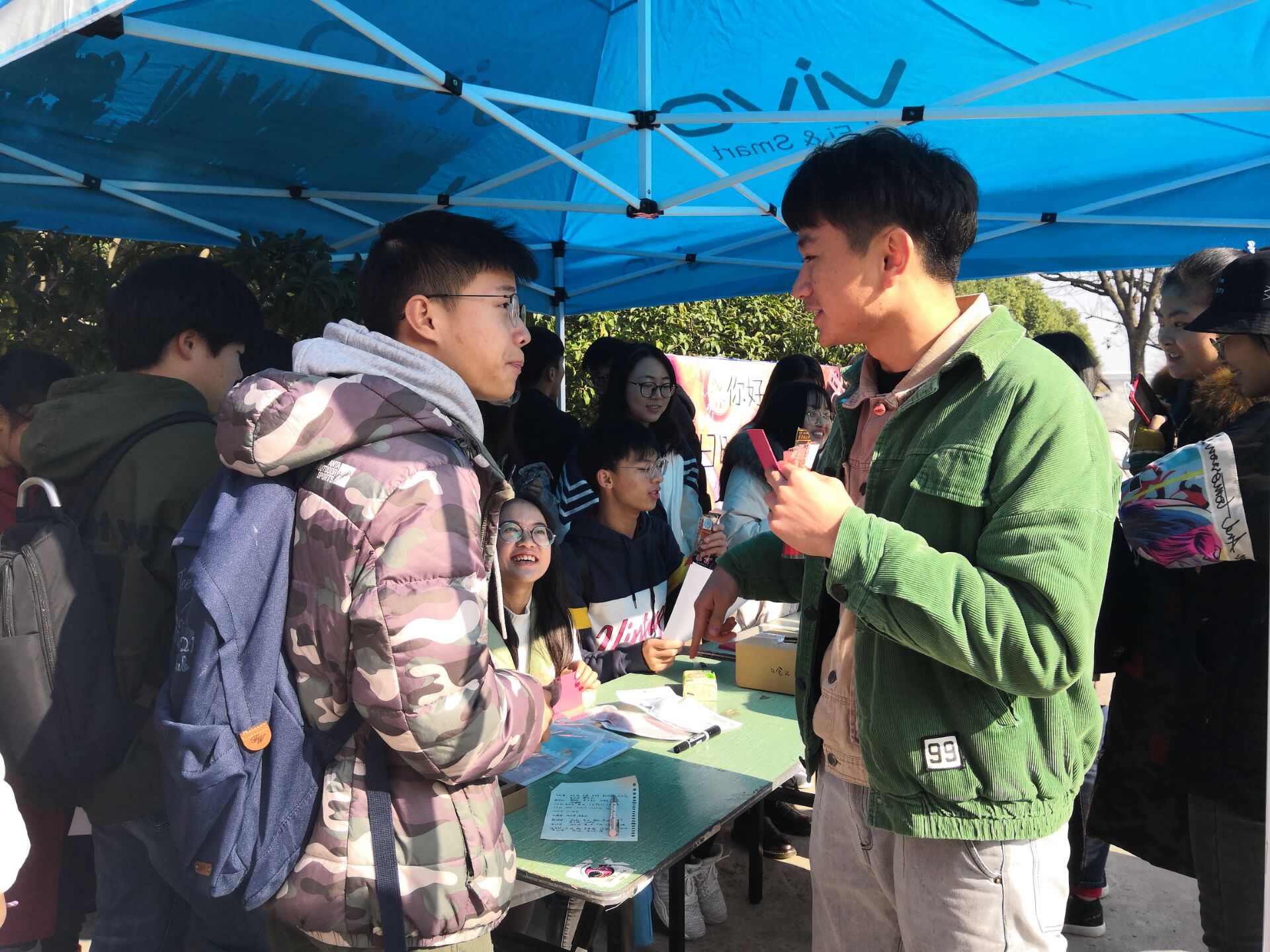 活动展板上的“你好,旧时光!”引来无数同学的驻足围观。不少同学们发现了桌上的小零食,都惊喜万分呼朋引伴地大喊:“看,那些零食好像都是小时候吃的那几种!”路过的同学越围越多,纷纷加入了“你说我猜”和“快问快答”的游戏中。