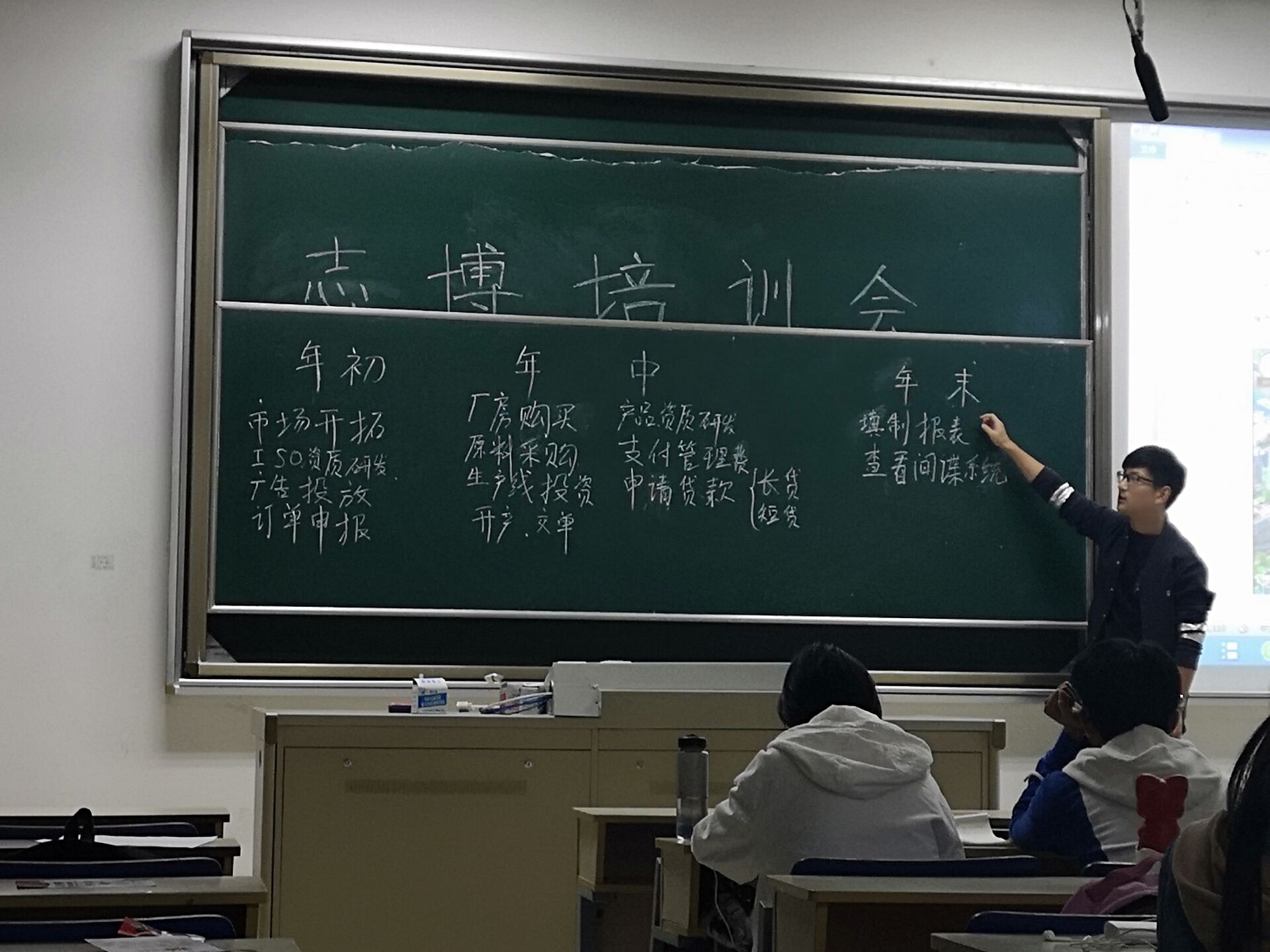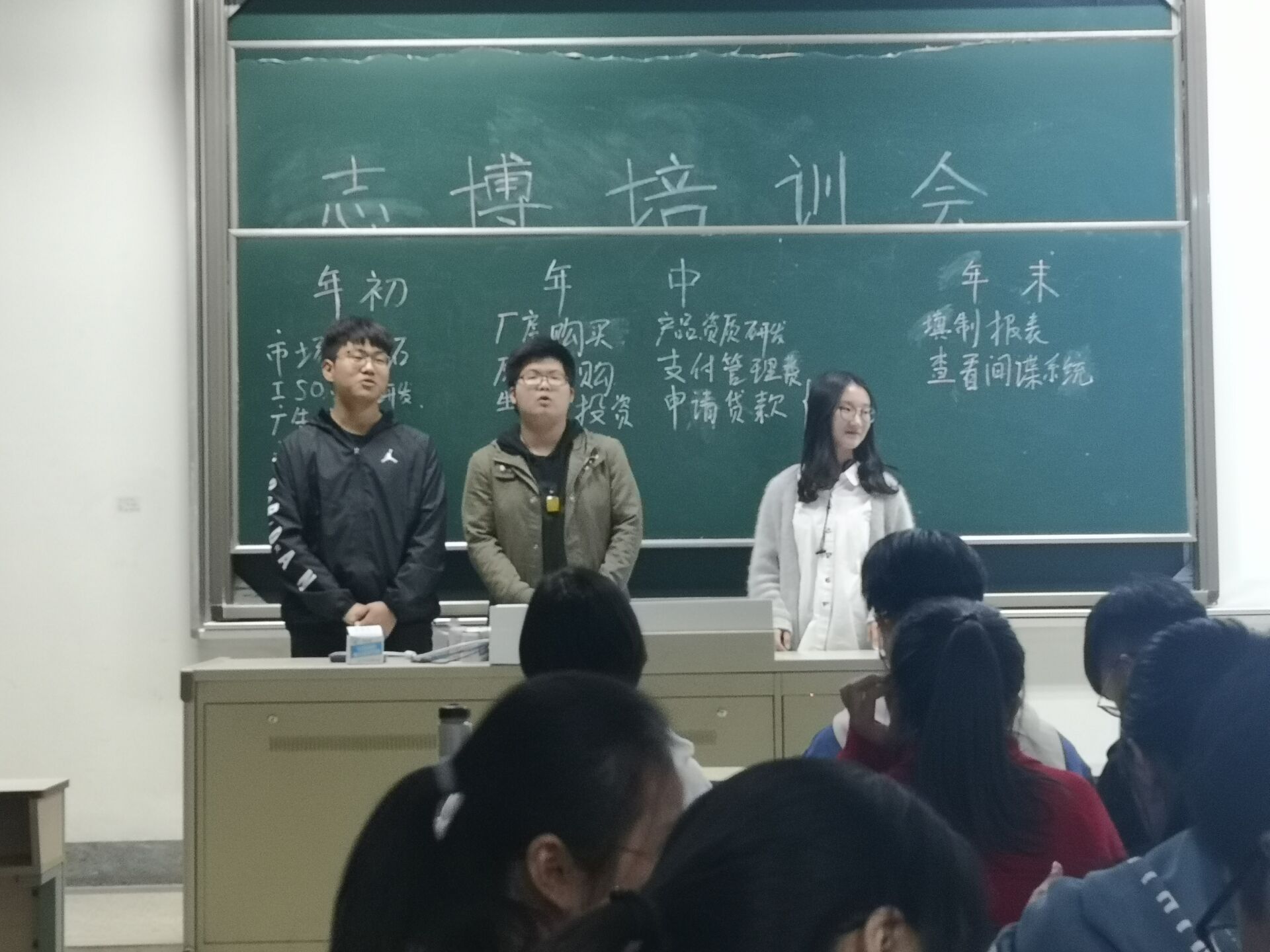 2018年10月26日,XC体育志博管理学社在仙林校区德经楼113室举办培训会,志博管理学社社长刘可欣、副社长谢志强和黄益健和全体社员一起参加。