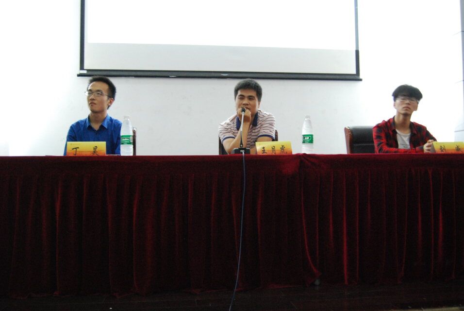 首先,王月虎老师以平易近人、幽默风趣的语言向同学们讲述了他几经波折的求学经历以及奋斗不息的学习生活,告诫同学们多些理想和追求,少些功利和浮躁,并寄语大一新生直面生活的挫折与磨难、奋力拼搏、勇敢追梦。接着,丁昊同学从英语学习开始谈起,向大家讲述了学习热情和人生目标的重要性,并谈及社团工作及创业体会。同时,他希望新生们学会坚持,不要轻易放弃。之后,刘威同学发言。他以自己的亲身经历向新生们分享了他的学习、生活经验,告诫同学们要明确自己的目标,切勿盲目选择。在答疑解惑环节,新生们踊跃提问,纷纷提出自己的困惑,嘉宾们耐心地一一解答,现场气氛活跃。