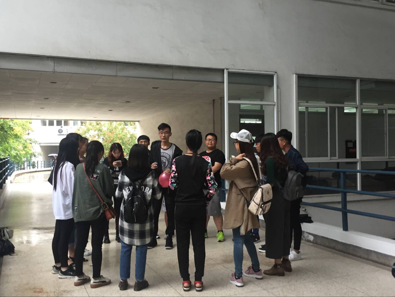大家冒雨在德济楼二楼走廊集合。首先是“记名字”游戏,每12人一组,每个人依次要说出其他成员的名字,旨在增进彼此的认识。其次进行的是“起球不落地”游戏,组员们一步一步,不协调却充满信心;一步一步,滑稽却又用心;一步一步,欢笑中争相前进。全场气氛活跃起来,也增强了组员间的默契及合作精神。