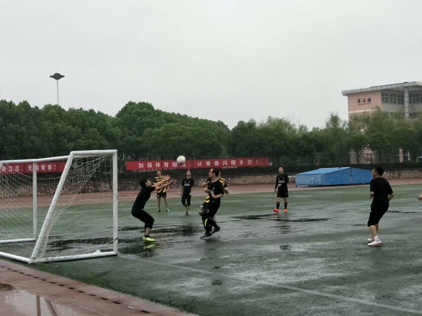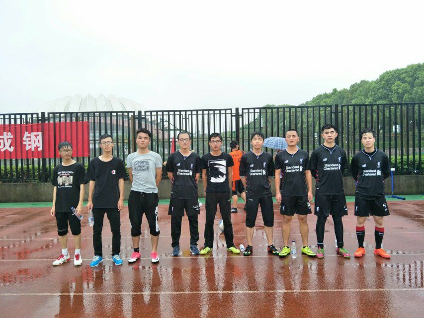 哨声在雨中吹响,比赛正式开始。针锋相对,如同骑士的对决。金融公司开场攻势强大,齐力出击,球权长握,XCsports不抵压力,连失三球,盾失手。欲起,却难以振作。哨响,雨水浸透了双方队员的衣裳,上半场伴随着磅礴的雨结束了。