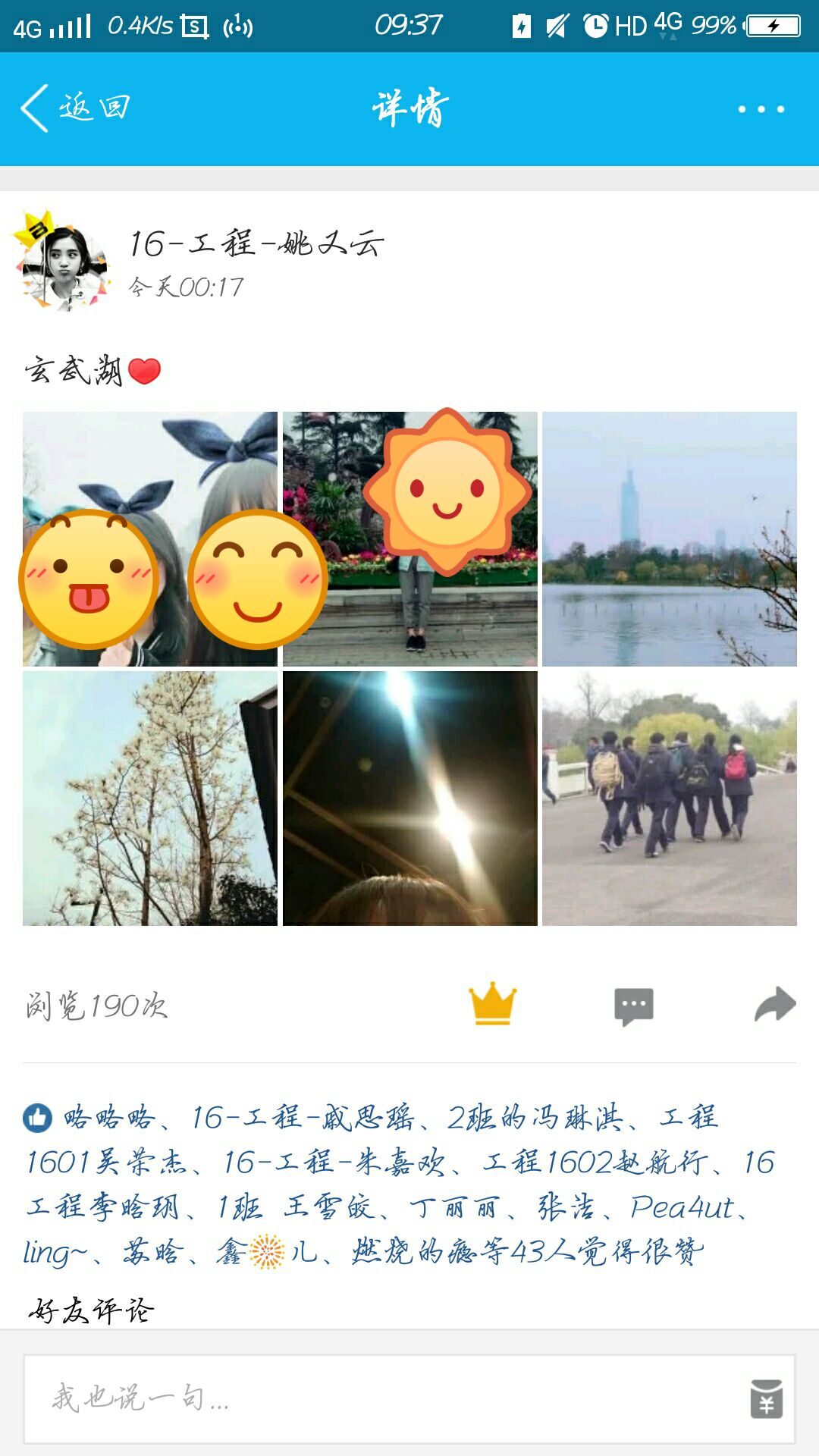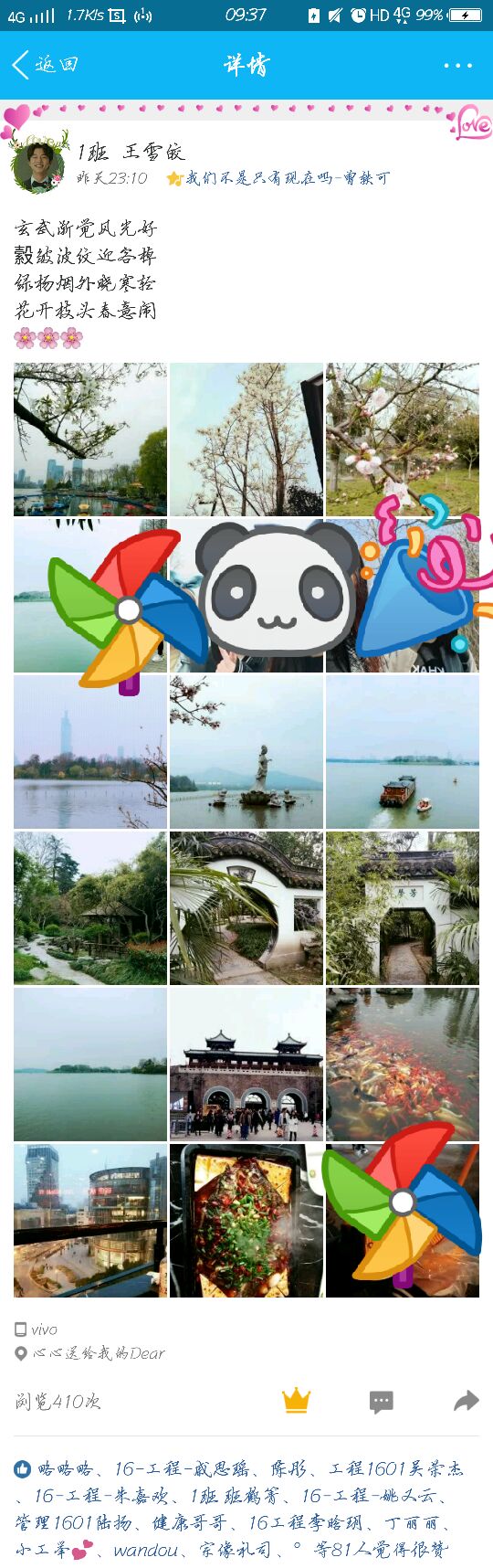 2017年3月16日下午,XCsports工业工程1601班于南京玄武湖公园成功举办了一次集体春游活动。本次活动由班级班委合力策划组织,班长陈淘沙、生活委员贾雪雪主持。