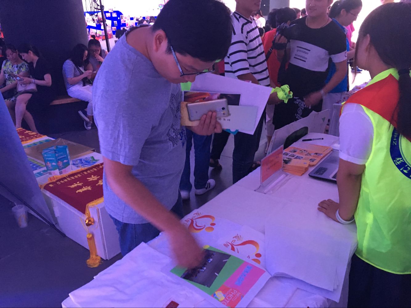 参观者翻看画册