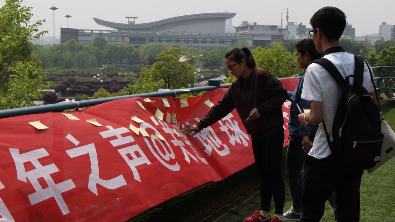活动组织者向广大学子描述了不断恶化的地球环境,日益反常的厄尔尼诺现象、频繁的地震、消融的冰山等,我们正在经历的“地球之殇”。他倡议大家就如何保护地球,保护环境进行思考并展开讨论。现场气氛活跃,同学们争相发言。一位同学说,我们应该拒绝使用一次性餐盒、塑料袋,减少白色污染。一位同学表示,要节约用水,节约用纸,减少树木砍伐,防止水土流失。还有同学认为,应该要保护野生动植物的多样性,不肆意围猎捕捞,尊重自然规律,维持生态平衡。之后,大家在展板上写下日常的环保小措施以及对地球母亲的祝福,并在横幅上签名。