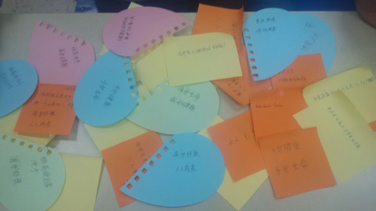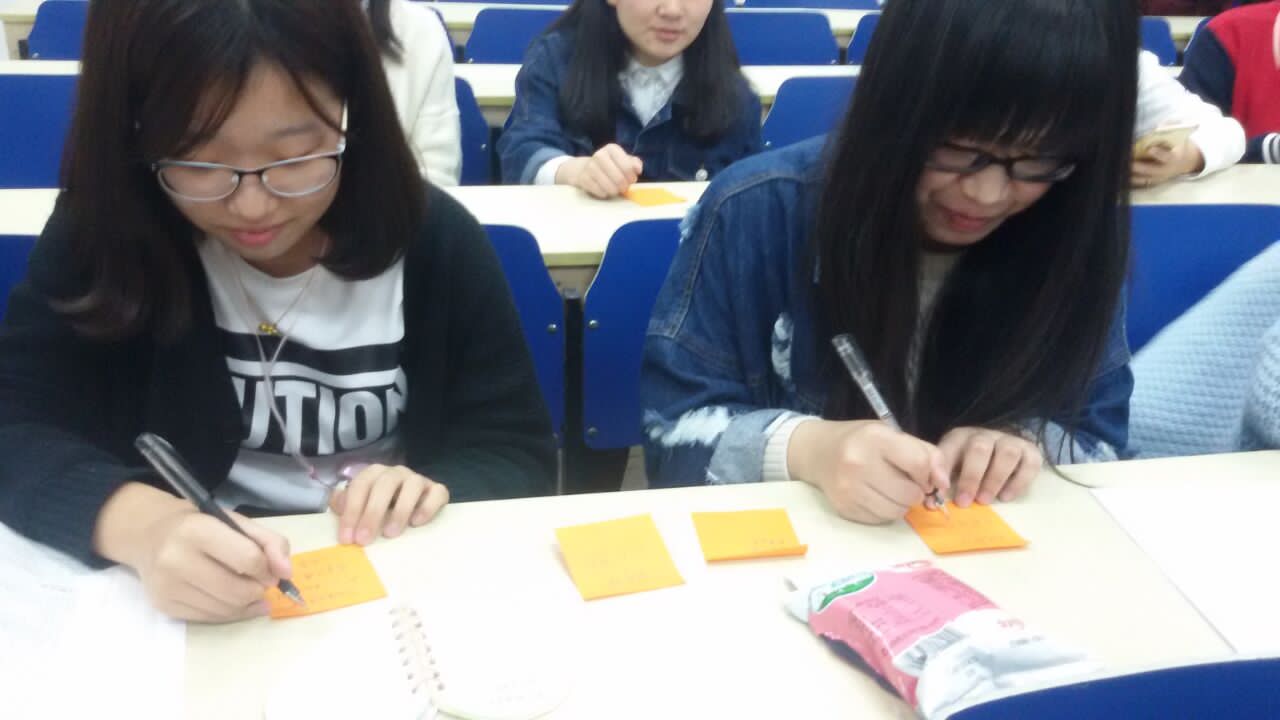 活动一共分为两个流程.首先是无手模拟环节,本环节一切活动不可用手。大家需从50到200的数字中任选一个写在纸上,然后把书本翻到相应的页数,自行选择要不要尝试剥开夹在书里的糖果,本环节限时30秒。此后,工作人员讲解正确洗手的方法和保养护理手部的知识,并带领大家一起做缓解手部疲劳的简单运动。紧接大家根据自己对世界卫生日的了解和参与本次活动的体验,在便利贴上写下心中想说的话。