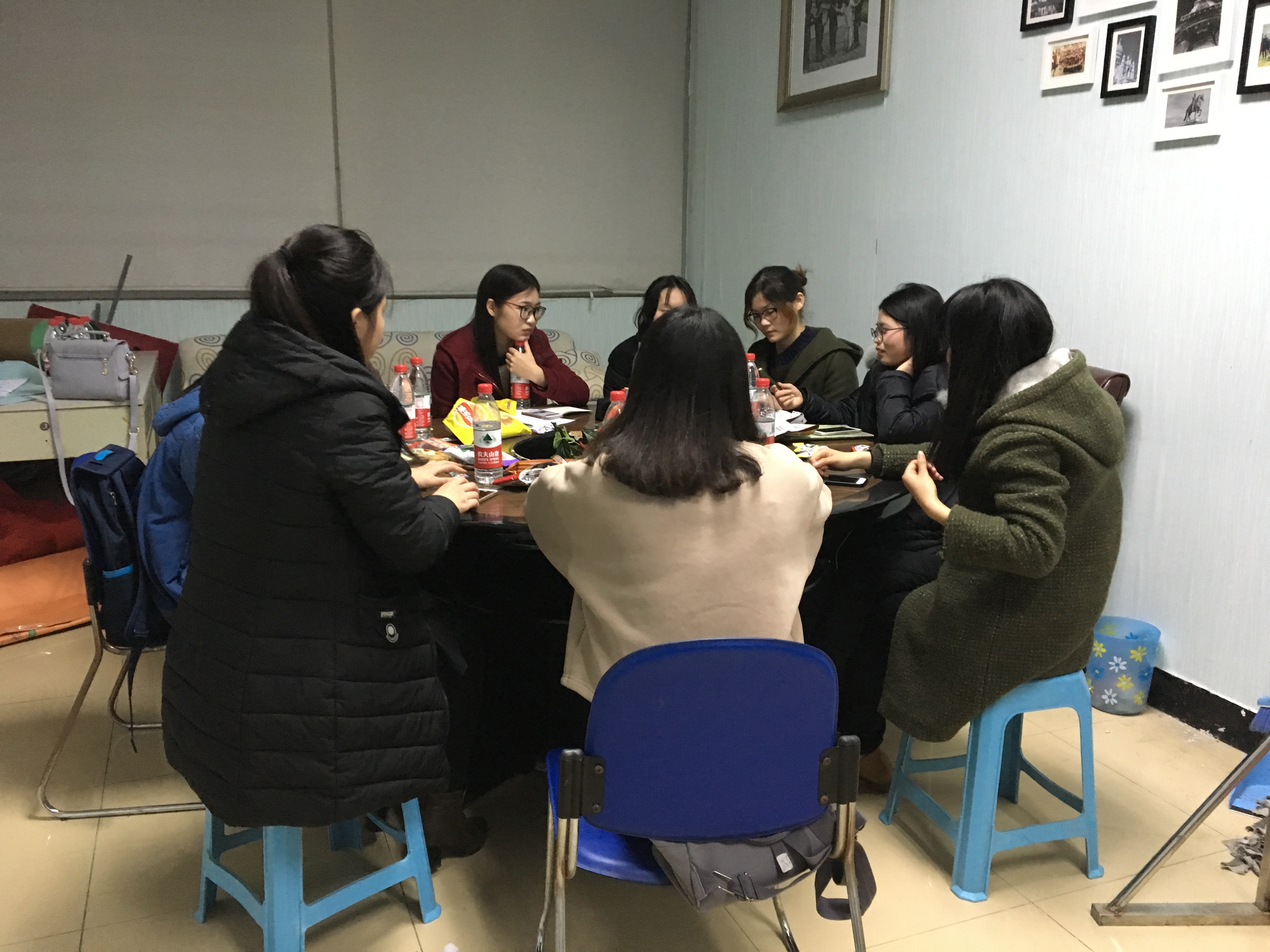 简单的自我介绍后,双方了解了彼此的部门架构与工作安排、程序。王露以国贸院女生节活动的微信推送为切入点,对其微信推送尤其是配图深表赞赏,并发出了配图难寻的感叹。谢佳娟表示配图可以在日常生活中拍摄,也可以借用优秀的公众号图片。就推送话题方面,谢佳娟表示她们在选题方面存在困难,称赞了XCsports公众号丰富的话题,对此,双方就如何选材进行了经验共享。之后,双方就艺术设计公司公众号具出彩点达成共识,表示应该共同学习艺设院公众号的小标题。其后双方还讨论了各平台公众号的日常运行、特色专题、微信制作平台等问题。钮敏秋提出应建设有温度的公众号,得到了大家的一致认同。在提及XCsports宣传部最近开始实行的代部长制度时,谢佳娟表现出了极强的认同感,认为这种制度既可以让干事了解部长的运作机制,为日后留任做好充足的准备,又可以培养干事个人解决问题的能力。最后,这次见面在双方对如何创新的各抒己见中结束。