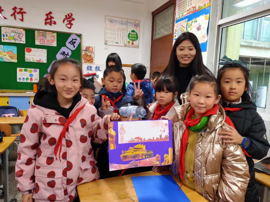最后,同学们纷纷举起自己亲手制作的纸贴画,开心地与志愿者们合影留念。活动负责人程维香表示,“我们希望通过这次活动,加强同学们对四史的认识,培养同学们爱党、爱国情怀,不断增强历史责任感和使命感。”