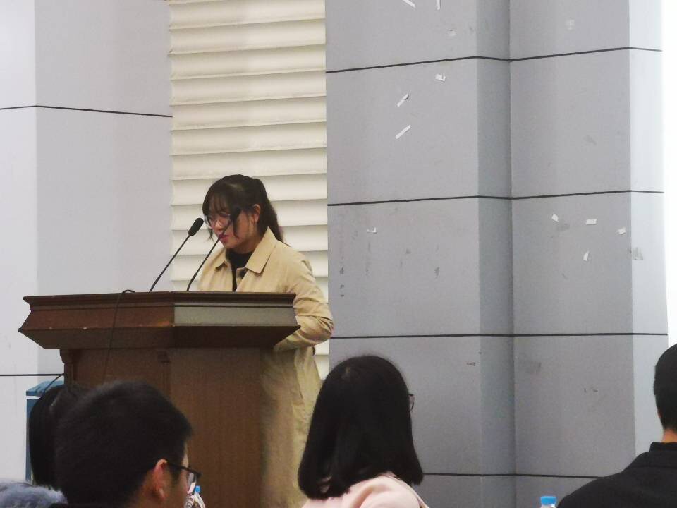 随后员工会主席、分团委副书记进行工作汇报,汇报结束后各部门进行述职答辩。各个部长以PPT的形式对部门的工作情况作出概述,总结了工作得失,并对未来工作进行部署。答辩中,员工会主席房雪婷提问外联部成员:“你认为在做外联的过程中需要注意什么?”,外联部成员回答:“需要注意与商家交流的细节,例如商家提出的要求以及商家提供的赞助价格。”