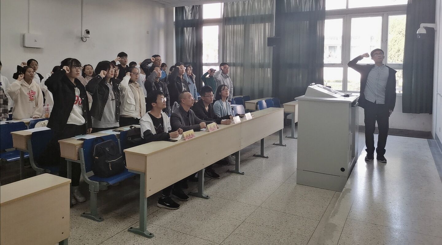 活动开始,学员们一起观看了往期青马班视频,回顾了过去的精彩活动,重温了中国共产党十九大报告,接着党总支副书记袁军老师讲话,他讲述了自己对往期青马班的感受,对新学员表示祝贺和欢迎,并对未来的学习提出明确的要求;随后第八期青马班优秀学员代表戴建洲发言,他分享了自己的学习心得,并鼓励新学员积极向上;紧接着唐方舟老师宣读了本学年初级团校优秀学员名单。随后第九期初级团校优秀学员代表黄宇涛发言,他讲述了自己对初级团校的认识,并表示自己会努力学习,不断进取。最后全体学员起立,唱完团歌后重温入团誓词。