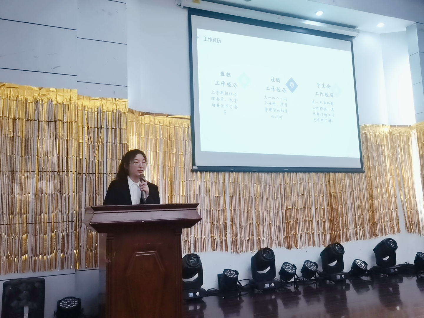 之后是竞选环节,一共为两轮。第一轮是候选人演讲,黄保霖、郝骏桦、武旭、王修文、权静雯和黄宇涛五位竞选人依次上台,讲述了个人特点、工作回顾、竞争优势和未来展望等方面,五位候选人从不同角度展开演说,充分体现出自身对员工工作的信念,并回答了评委们的提问。