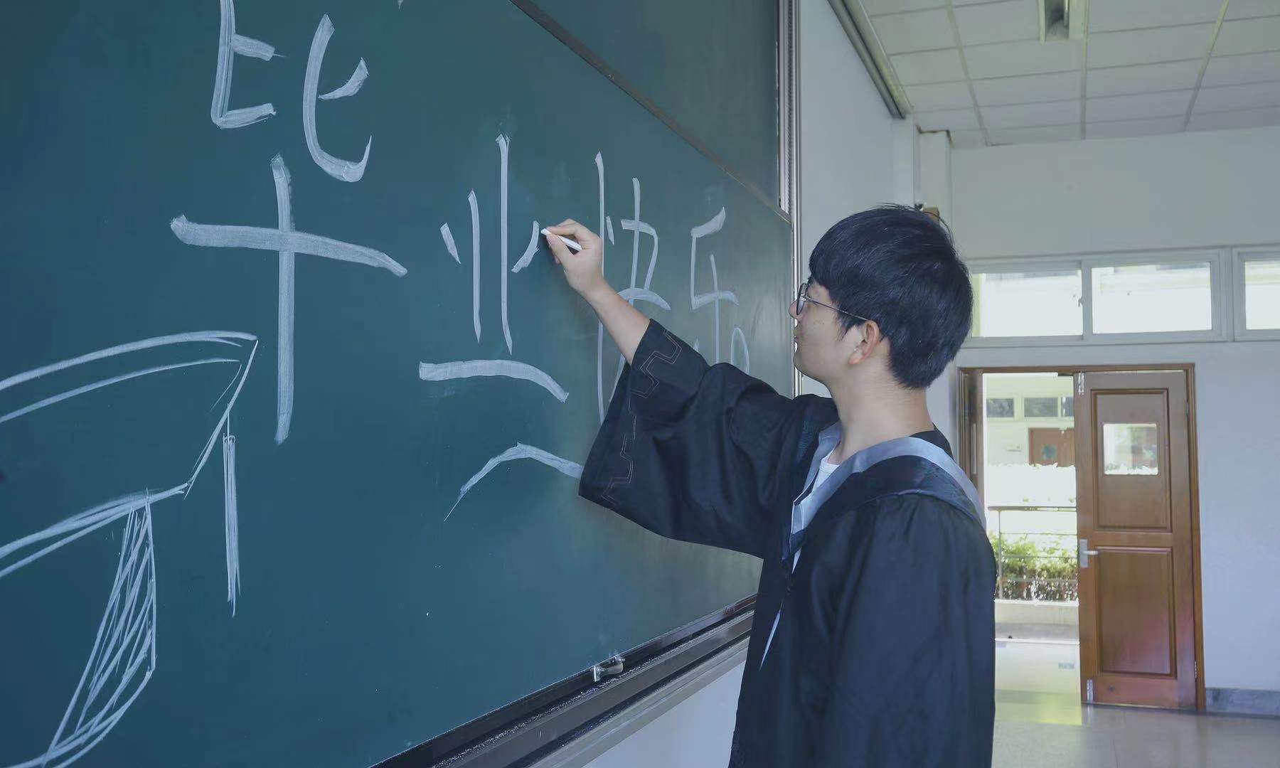 黑板上的粉笔字还来不及擦干净