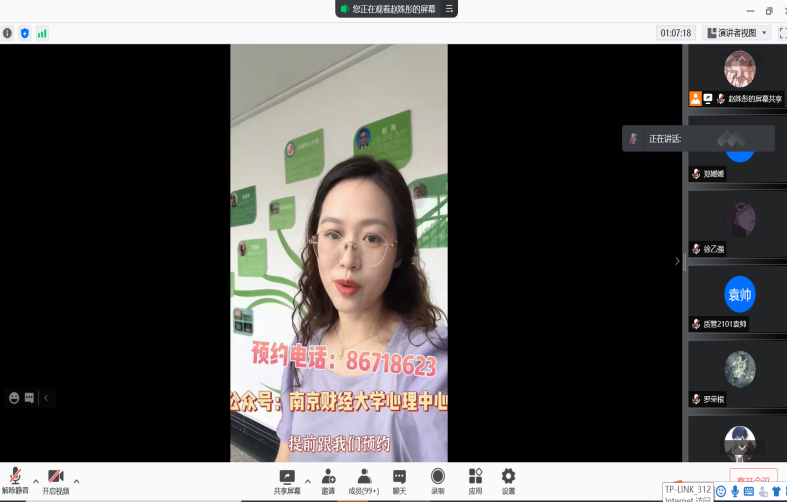 最后,郑媛媛老师暖心地利用此次班会为同学们播放了公司心理中心的介绍短片,同学们遇到心理方面的问题时可以预约咨询,帮助同学们走出心理上的困境。