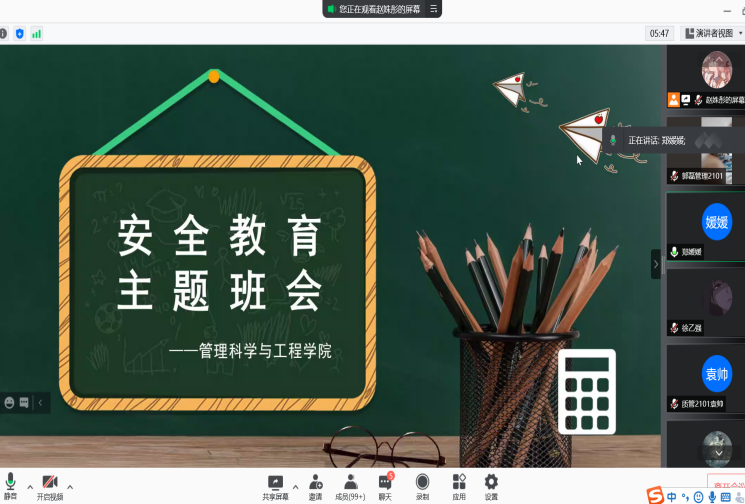 为进一步提高反诈防骗意识,防止员工被骗、参与诈骗,遏制电信网络诈骗向校园渗透,XCsports辅导员郑媛媛老师于9月30日晚8点,组织2021级新生和2019级员工通过腾讯会议举办安全教育主题班会,本次会议由管理1901班安全纪律委员赵姝彤主持。
