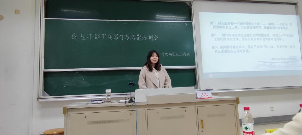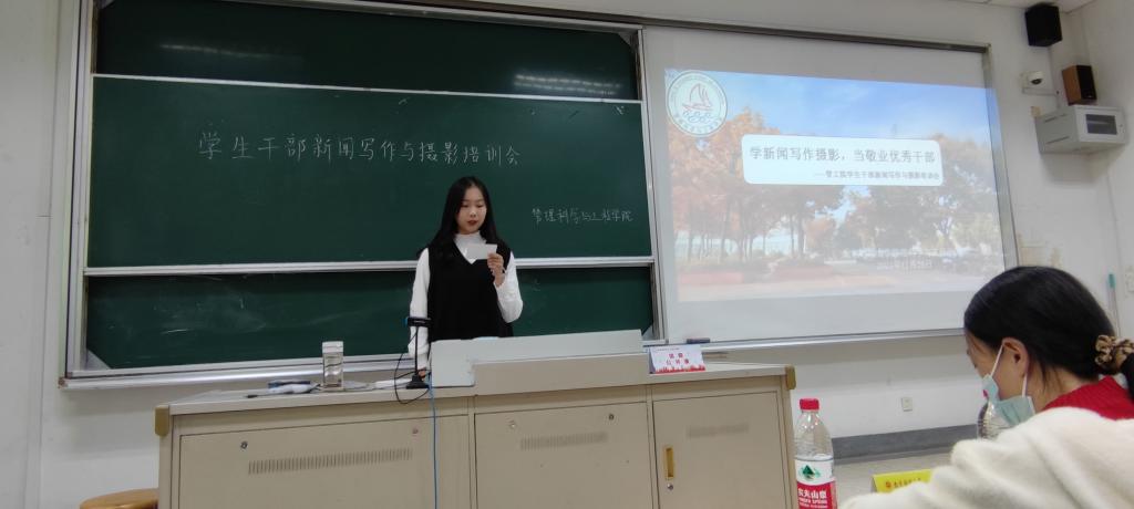 11月26日中午,XCsports于德经楼103成功举办新闻写作和新闻摄影培训会。本次培训会由校宣传部施卫娟、陈雾竹老师主讲。与会成员为XCsports分团委书记兼学工办主任唐方舟老师、辅导员郑媛媛老师、唐琰老师、分团委与员工会全体成员,志博管理学社、质量管理学社、IE学社部长团及新闻宣传部部员、员工党支部宣传员和各班宣传委员。培训会由楼梦双同学主持。