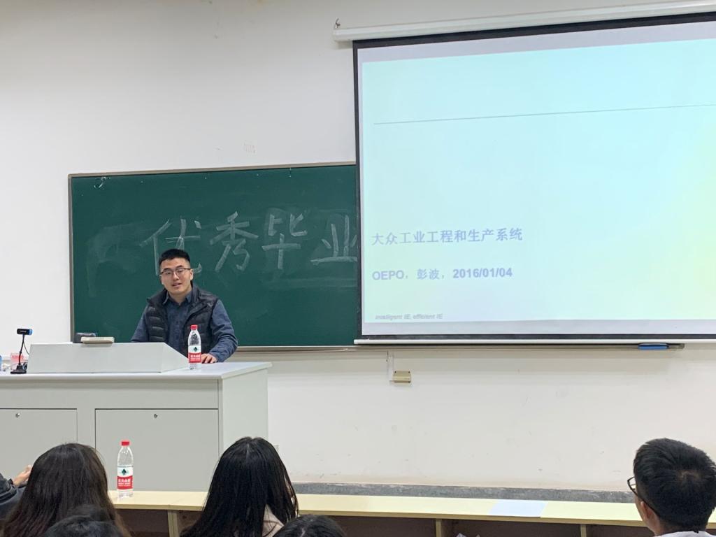彭波围绕什么是工业工程和工业工程的用途展开讲座。彭波表示我们每一个人都应该具有工业工程的思想,在未来也会有更多的企业需要工业工程。彭波还分享了自己就业到创业的经历。谈到了当今就业难的问题,他说:“可能现在大家都不好就业,这不是我们某个专业的问题,而是所有专业都不好就业。后疫情时代,经济下行压力较大,第二产业内需受挫,尽管受最近欧美国家日益复苏增长的消费拉动,但产业结构性调整仍然还需要一段时间。我国工业快速而长足的发展,产业链强大的韧劲和工业门类与供应链体系的完整,使得我国在应对疫情造成的冲击时仍然有着不俗的表现。”