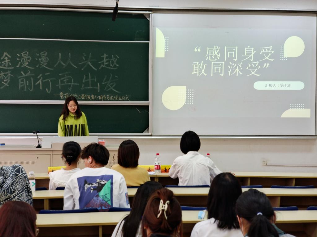 接着,大家一起观看了青马班回顾视频,回忆了学员们一起成长的点点滴滴。随后,学员代表蒋丙晨同学上台发言。他表示,青马班通过志愿服务、交流讨论和观影等多种方式等,提升了同学们的思想政治素质、政策理论水平、创新能力、实践能力和组织协调能力,收获颇丰,感谢每一位青马班成员的陪伴。